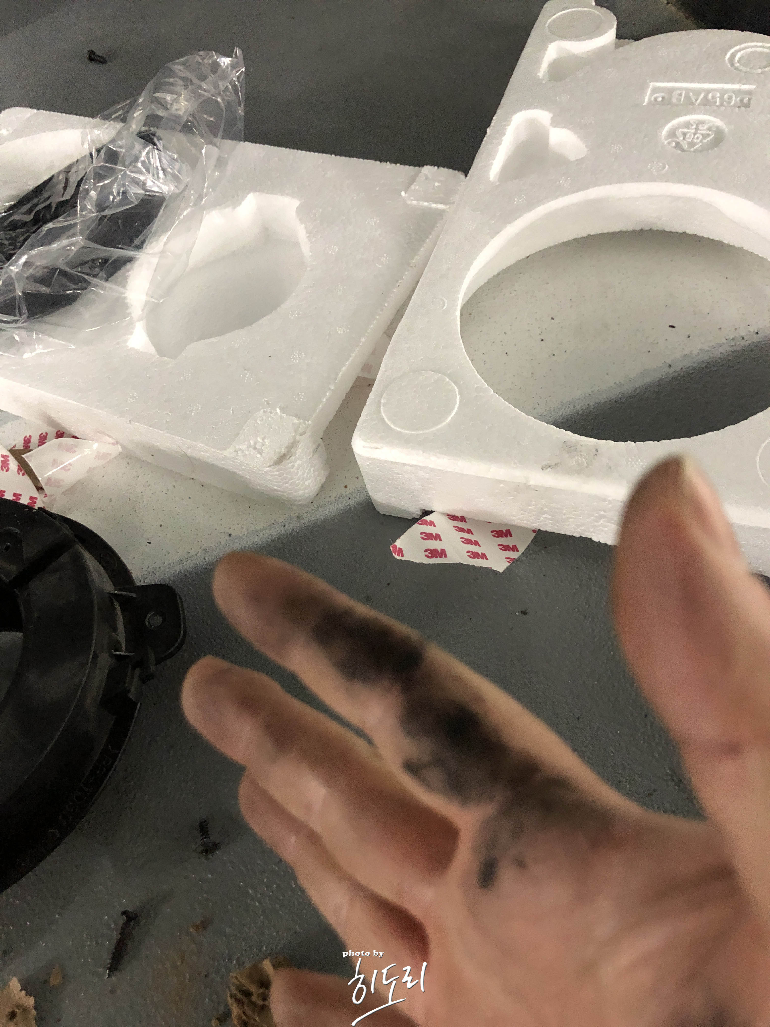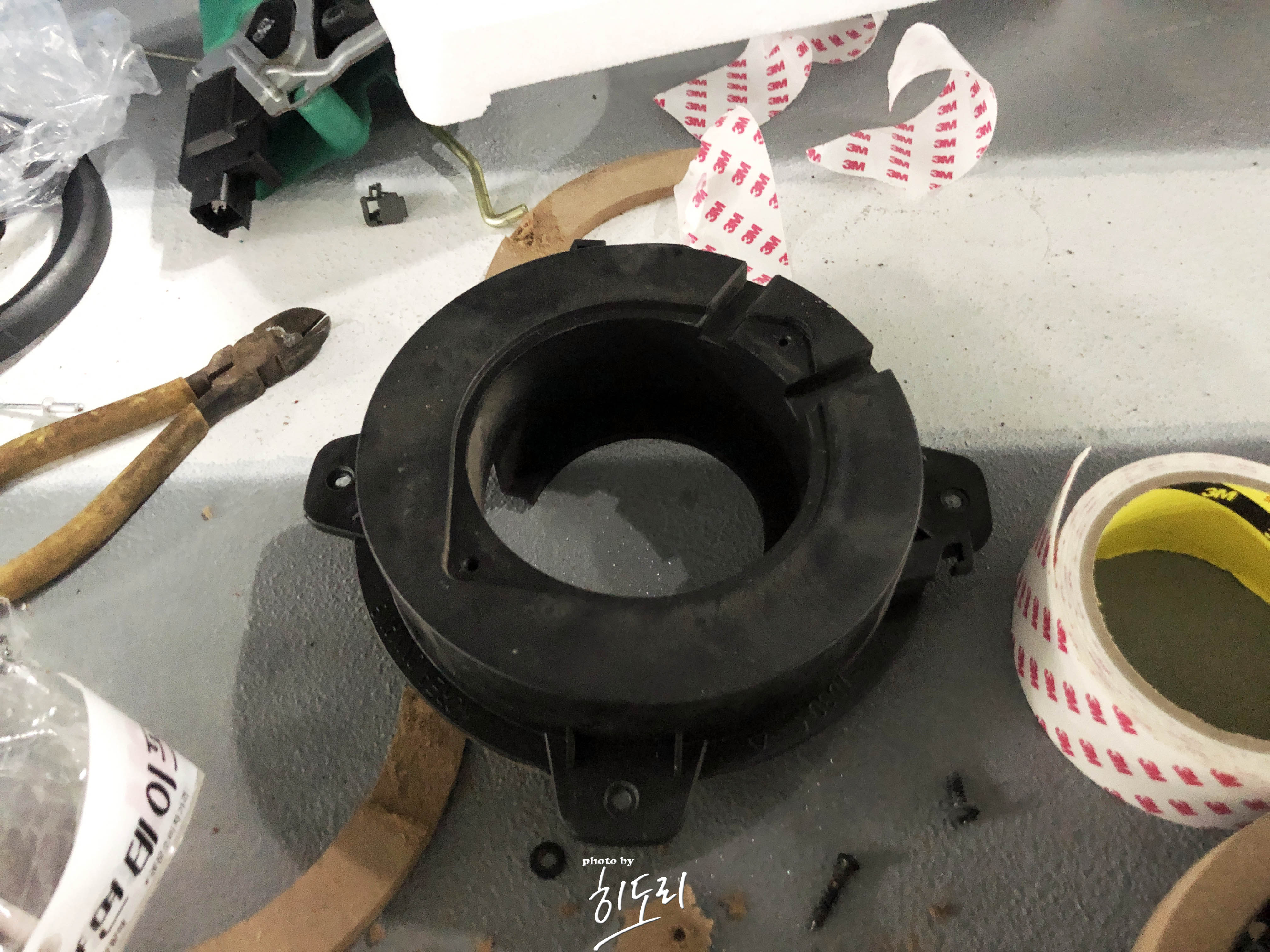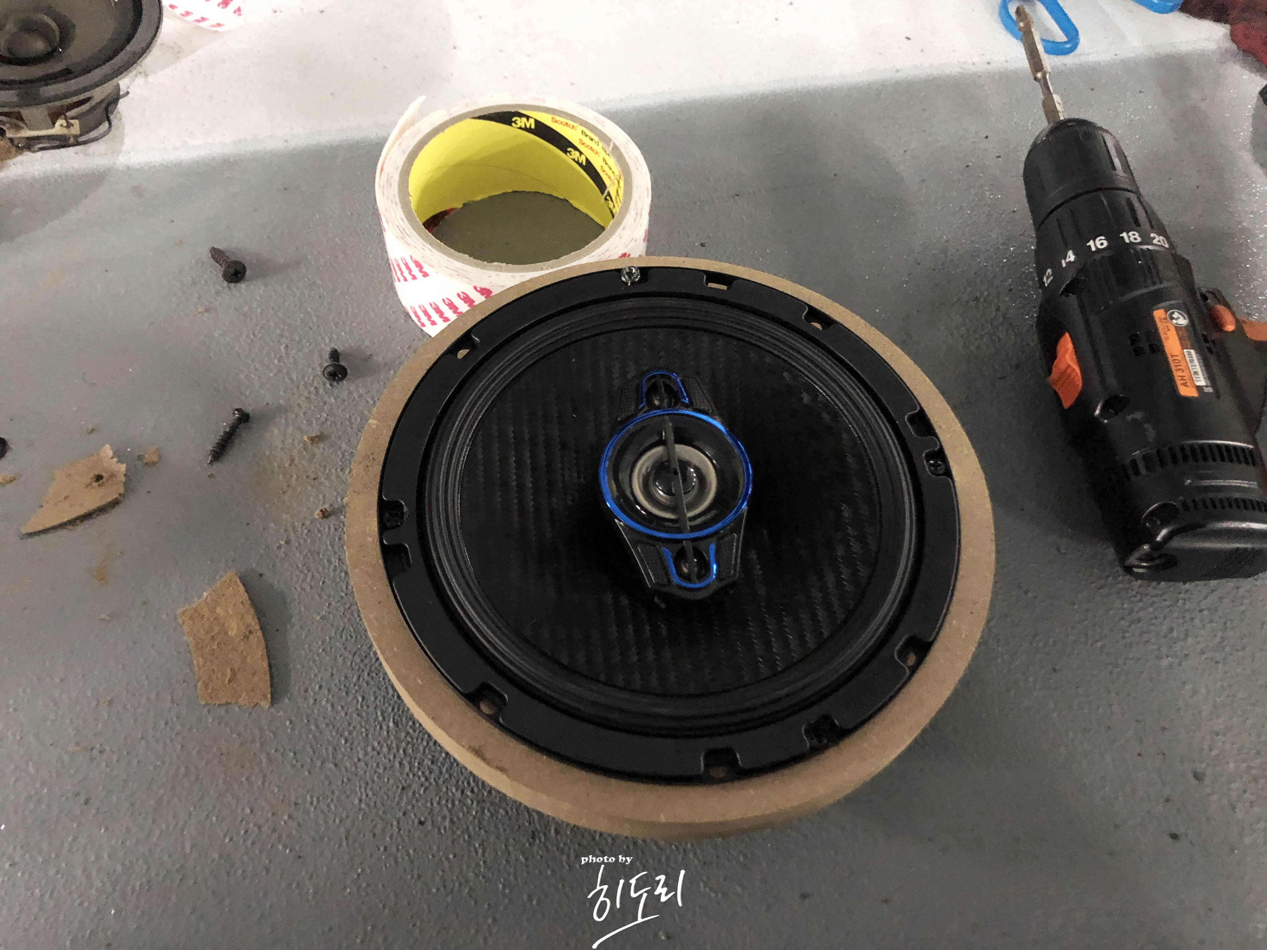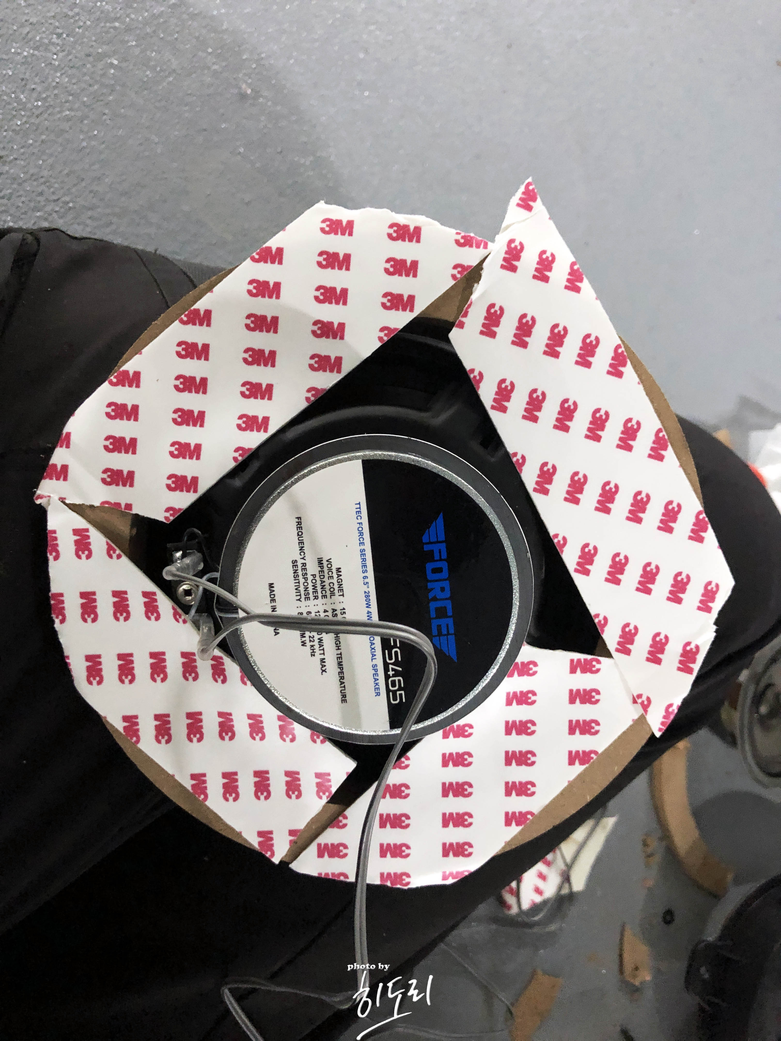 일단 나사로는 고정이 안되는 상태다 보니 양면테이프로 대충 스피커 자리에 고정을 시키고 도어트림을 다시 닫으며 어느정도 도어트림때문에 빠지지는 않겠구나 라는 계산....