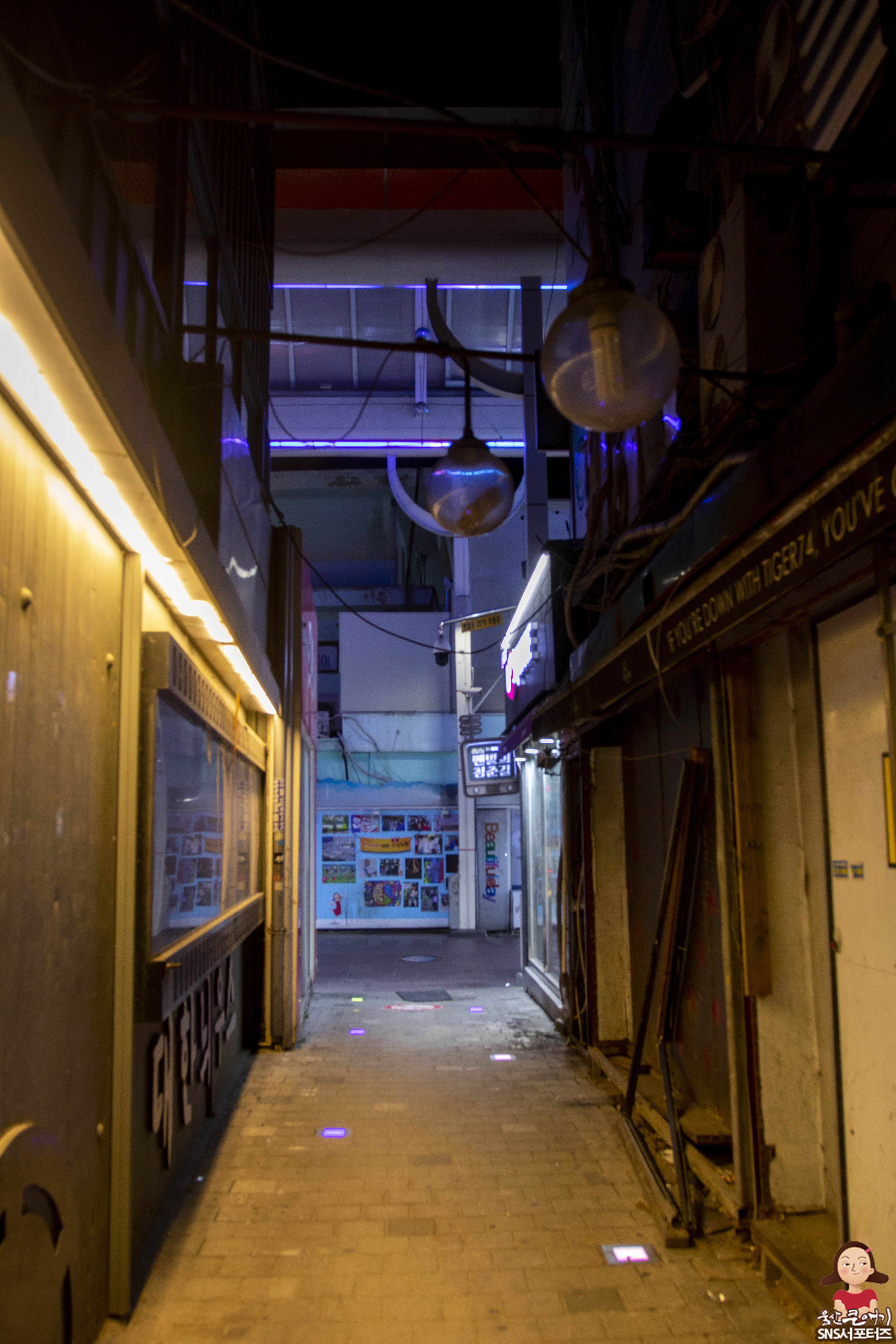 골목을 훤히 비추는 조명도 설치되어 있습니다.