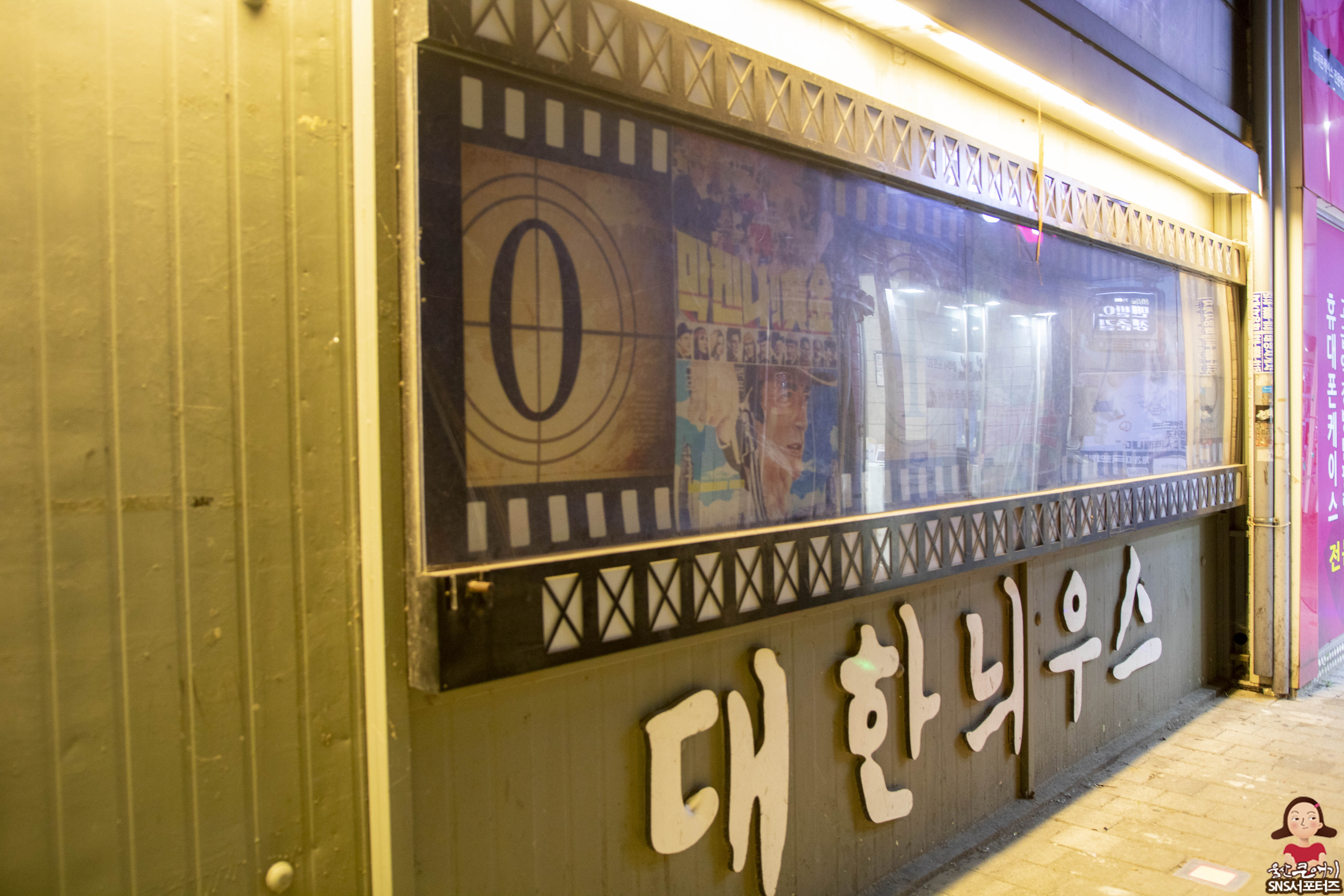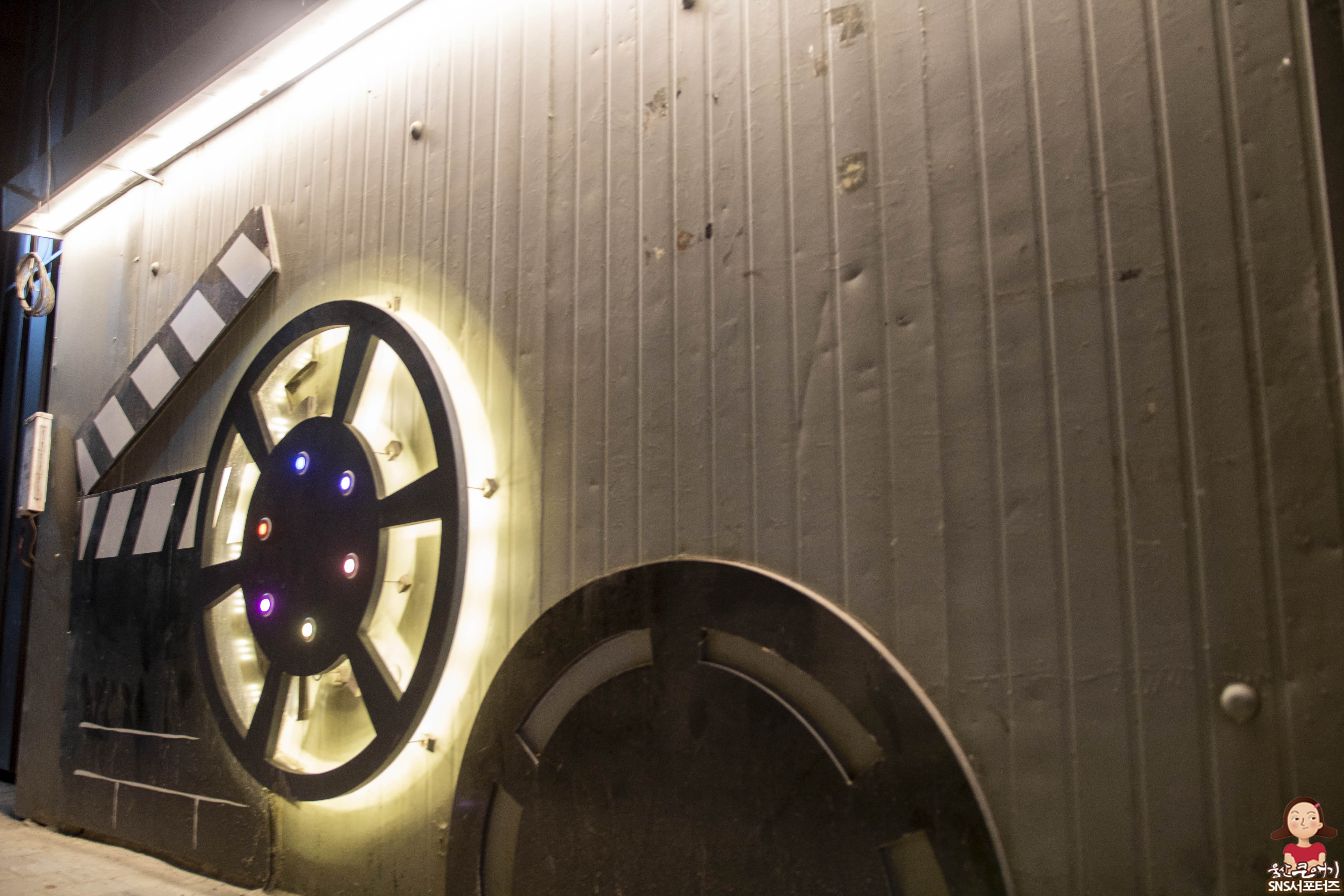원래는 동작 감지 센서로 사람이 지나가면 자동으로 7080 통기타 음악이 나오도록 하고, 벽에는 영화 포스터를 활용한 포토존이 설치되어 있는데 센서가 고장이 나서 그런지 음악은 안나오더라구요.