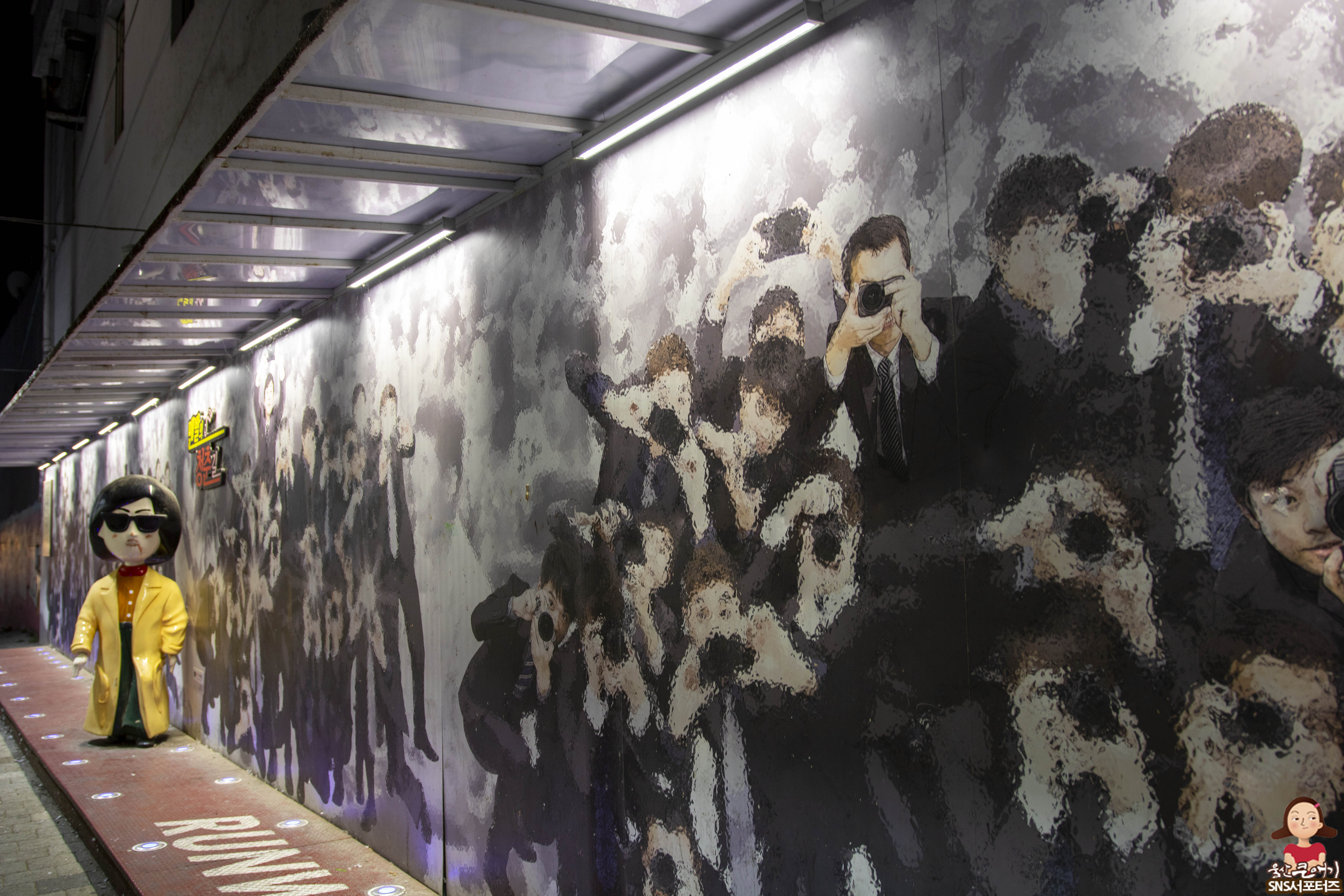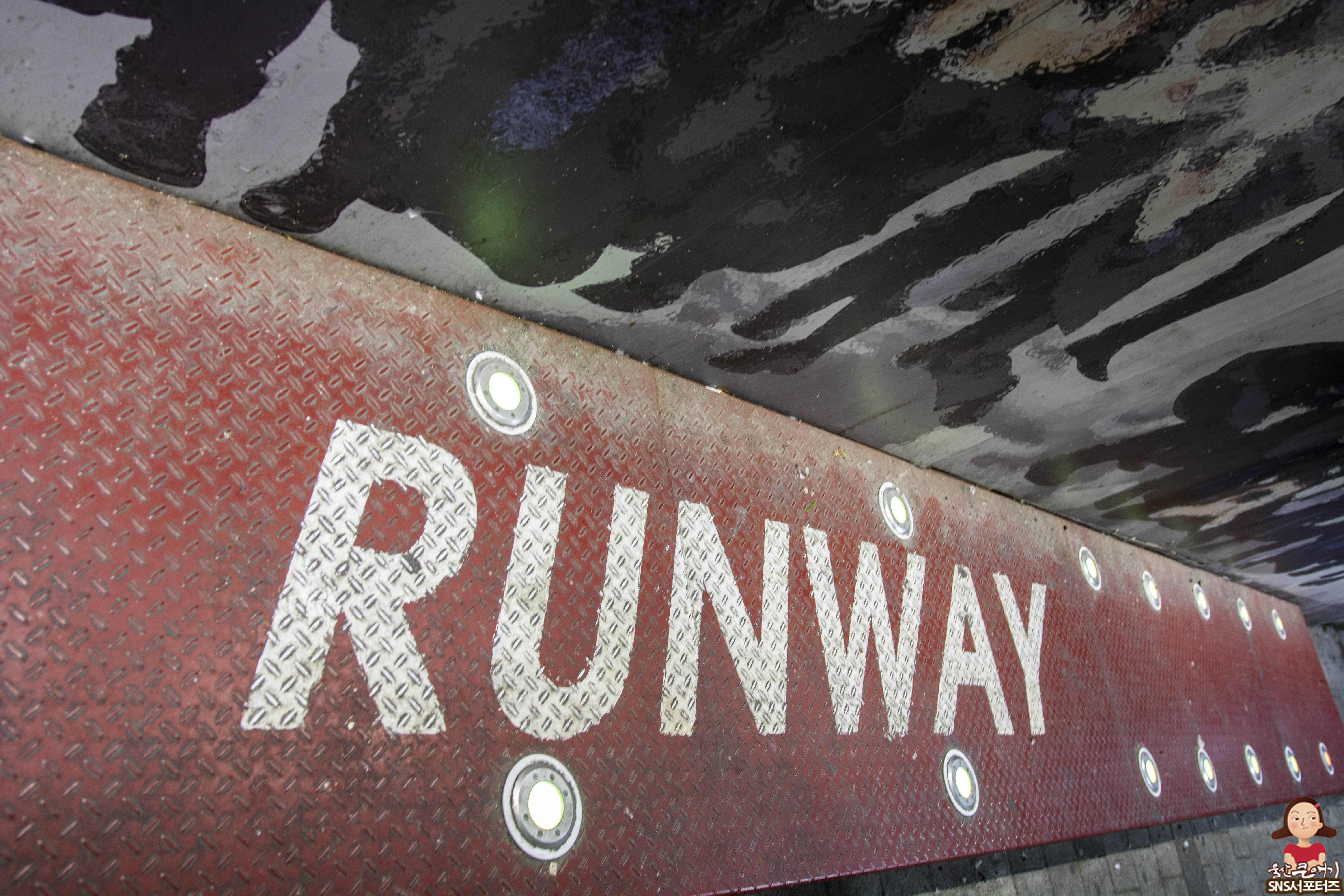 런웨이길이 설치되어 있고 벽화에 그려진 카메라들로 잠시 패션쇼를 해보시면서 사진을 찍어보시는면 인생사진 한장 완성!