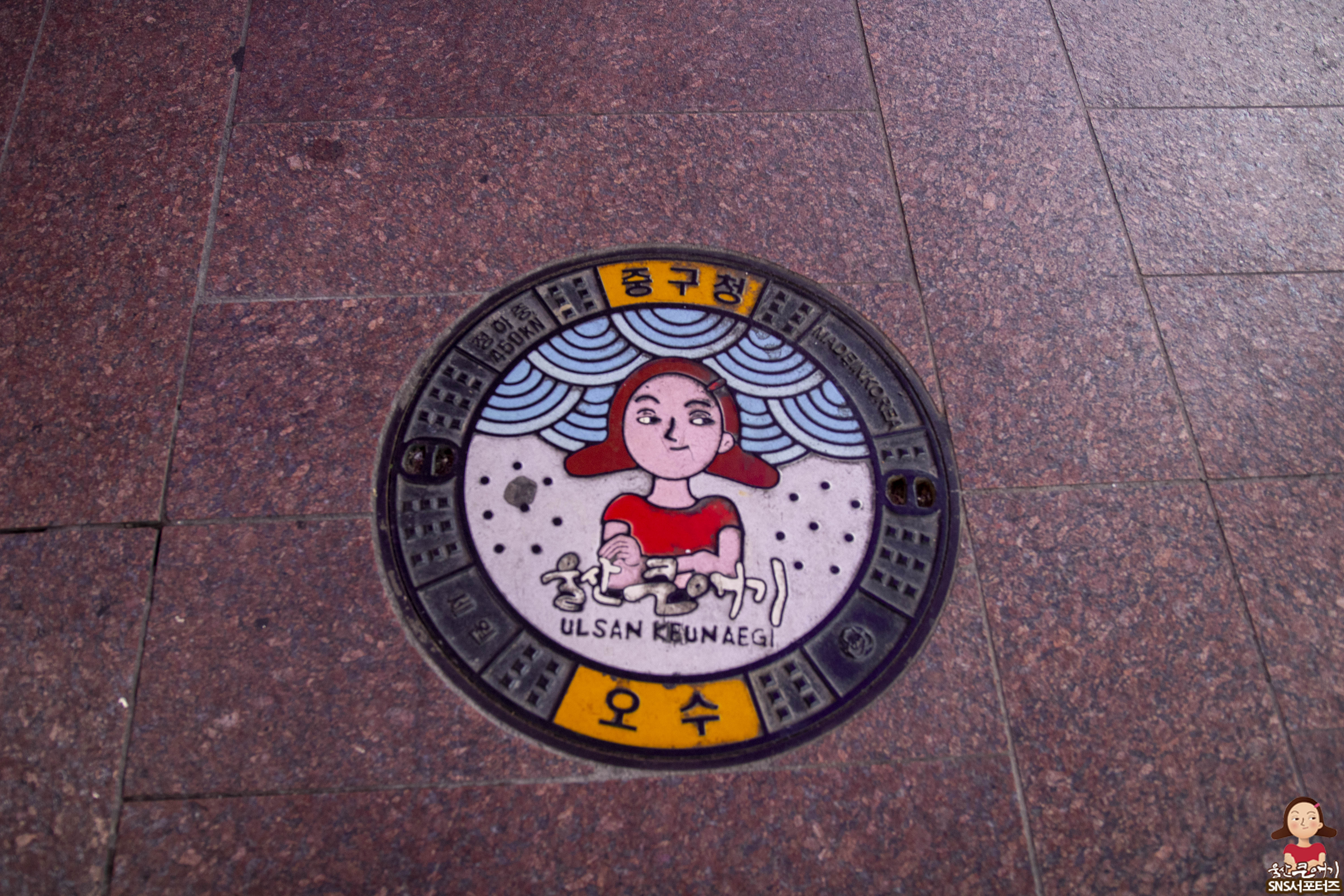 그리고 울산큰애기 하우스가 있는 성남동이기에 성남동 일대는 울산중구의 마스코트 울산큰애기가 곳곳에서 볼수가 있답니다. 맨홀뚜껑에도 울산큰애기씨가 그려져 있어요.