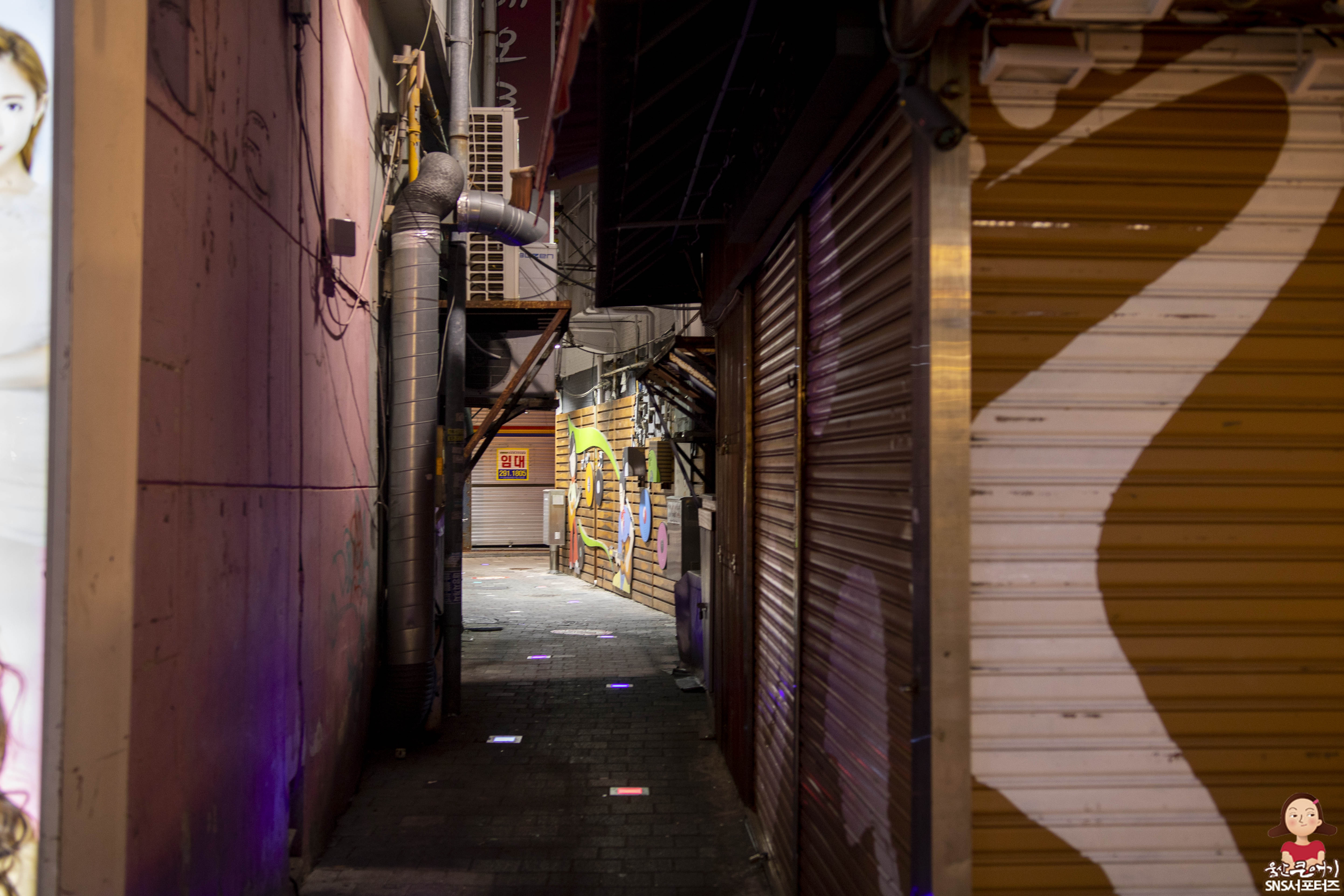 메가박스 앞에 있는 이 골목길은 음악존 맨발의청춘길 입니다.