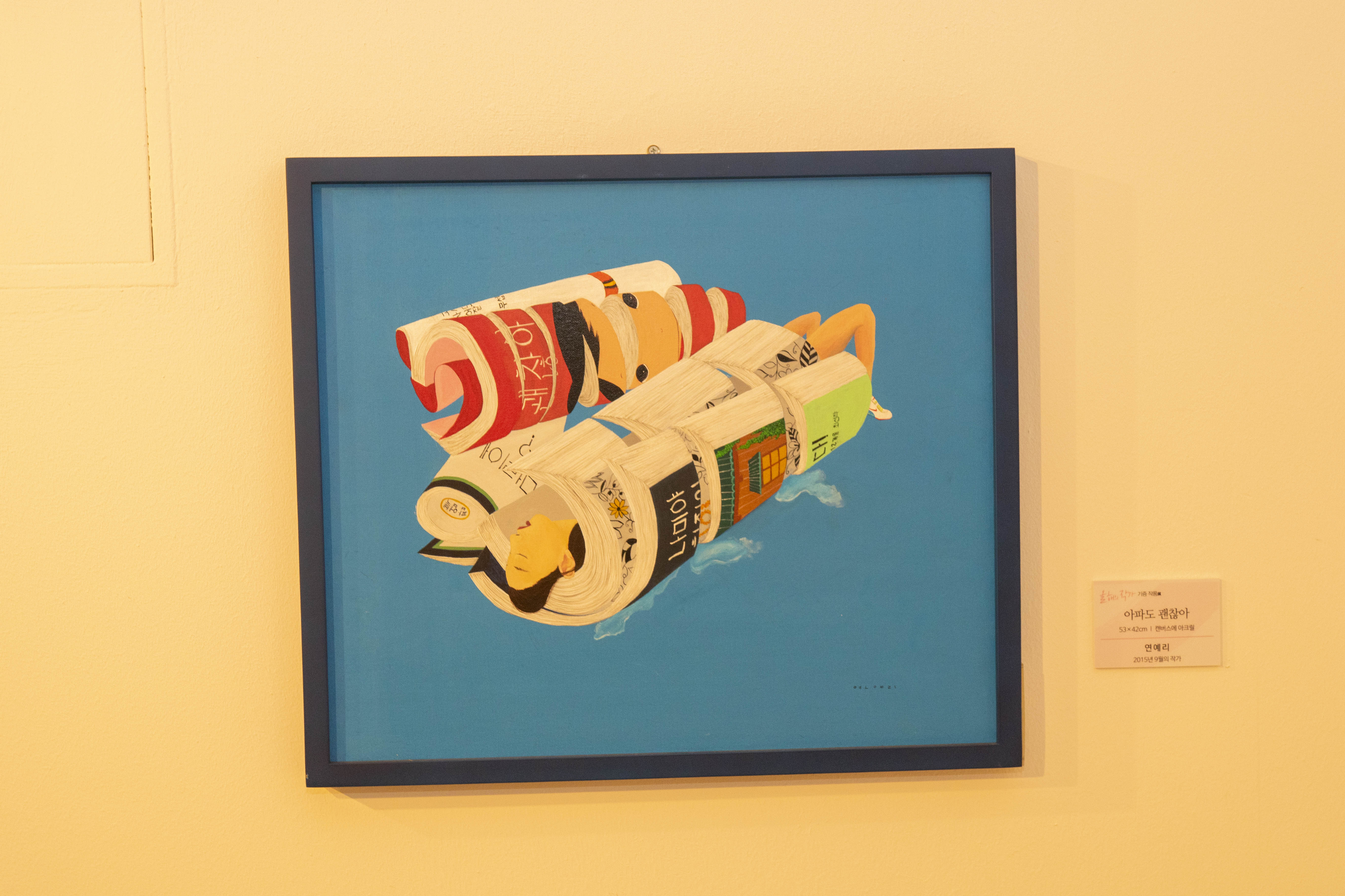 참여작가는 김영진,고동희,이귀동,권유경,연예리,이상아,박하늬,안은경,권혜경,황한선,이미영,서유리,장수은,김소리,곽은지,이정빈,김용규,천유리,박빙,오소영,박소현,엄상용,홍차,김아름,안민환,윤기동,이아름작가님들에게 기증받은 작품들이 전시되어 있습니다.