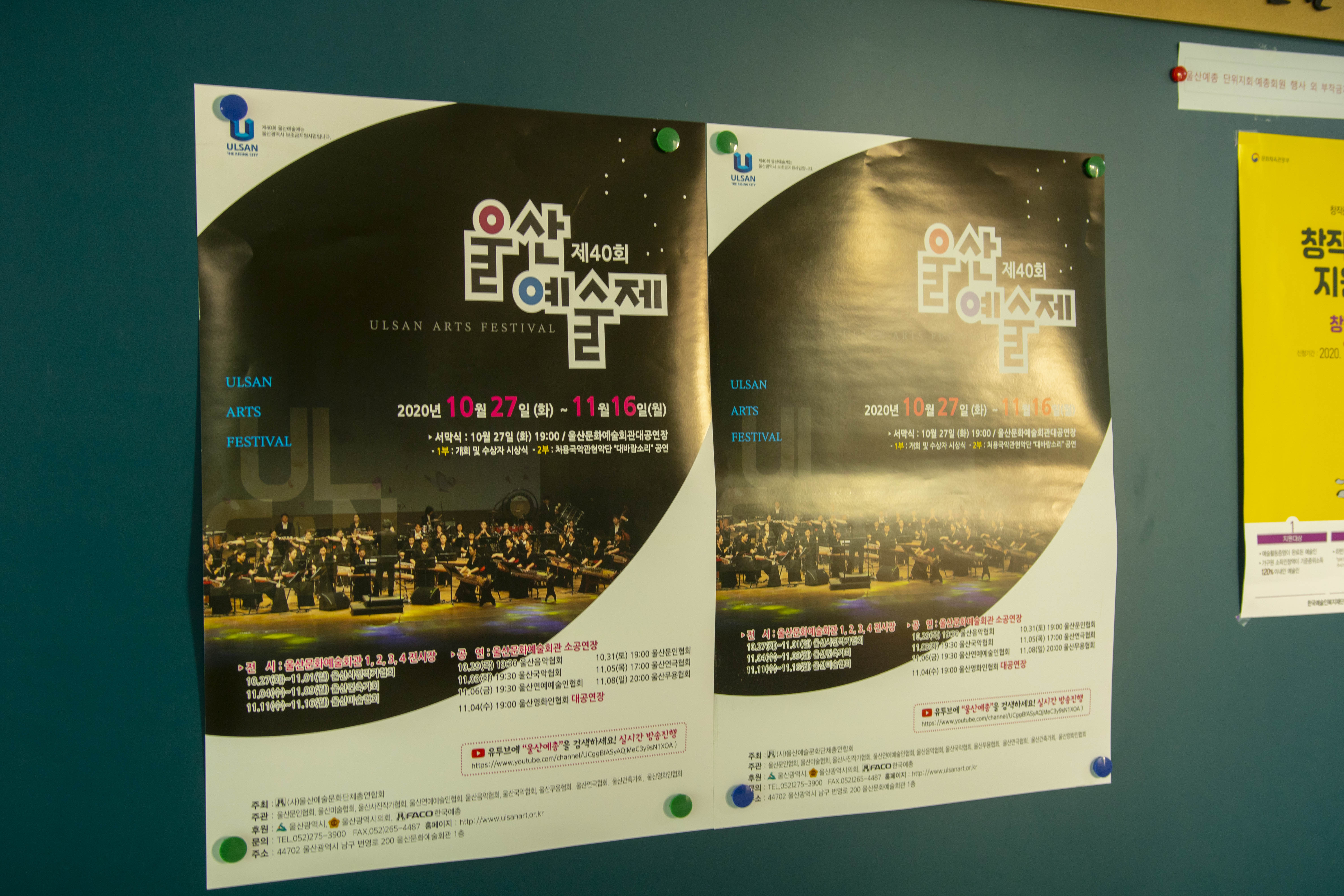 10월27일~11월16일까지 개최가 되며 예술제 기간 동안 음악협회는 10월29일 ‘제9회 한국가곡의 밤’, 문인협회는 10월31일 ‘제25회 가을밤 문학축제’, 국악협회는 11월3일 ‘국악의 밤’, 영화인협회는 11월4일 ‘울산시네마토크 콘서트’, 연극협회는 11월5일 연극공연 ‘언덕을 넘어서 가자’, 연예예술인협회는 11월6일 ‘제21회 어울림콘서트 웰컴 투 1999 PARTY’를, 무용협회는 11월8일 ‘제25회 울산무용협회 정기공연’이 있고 또 전시로 10월27일~11월1일 사진작가협회의 ‘2020회원 창작 작품전’이, 11월4일~11월9일 건축가협회의 ‘2020년 건축가회 회원전 및 건축대전(1~3전시장)’, 11월11일~11월16일 미술협회의 제40회 가을미술제가 전시가 된다고 하니 많은 시민분들이 많은 볼거리를 즐겼으면 합니다.