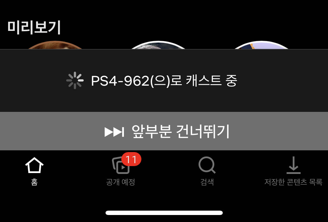 뭐가 떴는지 확인할려고 폰을 켜니 PS4을 이용해 넷플릭스를 이용하던중이 였는데 아이폰에서 PS4로 캐스트 연결이 되더군요.