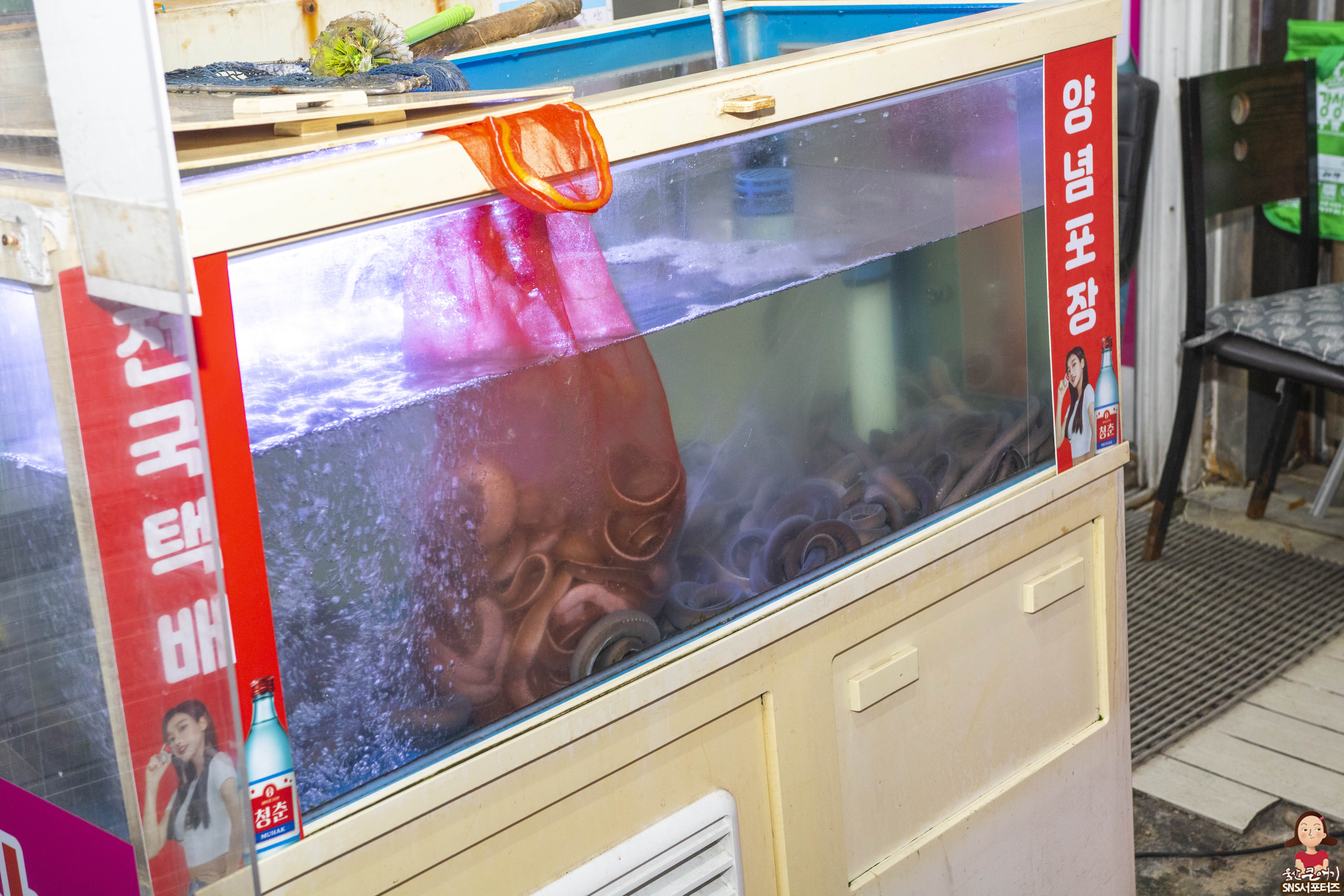 곰장어식당들이 즐비차게 줄서 있는 곳곳 수족관에는 곰장어들이 헤엄을 치며 손님들의 눈을 사로 잡습니다.