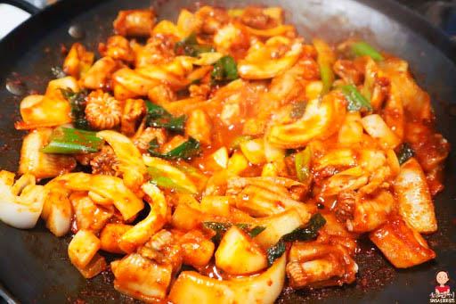 냄비에 넣고 5분정도 조리를 하면 야채에서 나오는 국물들로 짜글짜글한 국물들과 곰장어들의 환상의 조합을 보여줍니다.