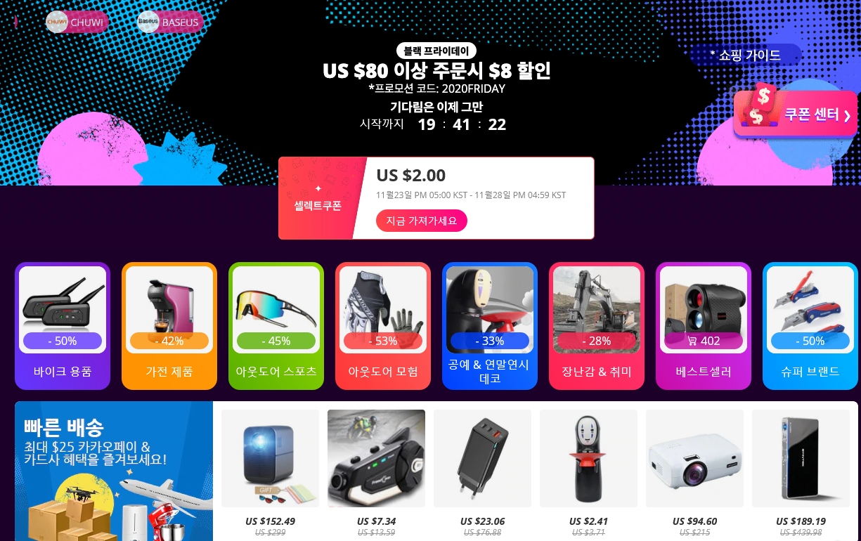진짜 블랙프라이데이는 27일 28일인데 이때는 아마존을 뒤적거려야 되고 알리에서는 얼리세일인지 모르겠지만 어제부터 시작이 되었어요.