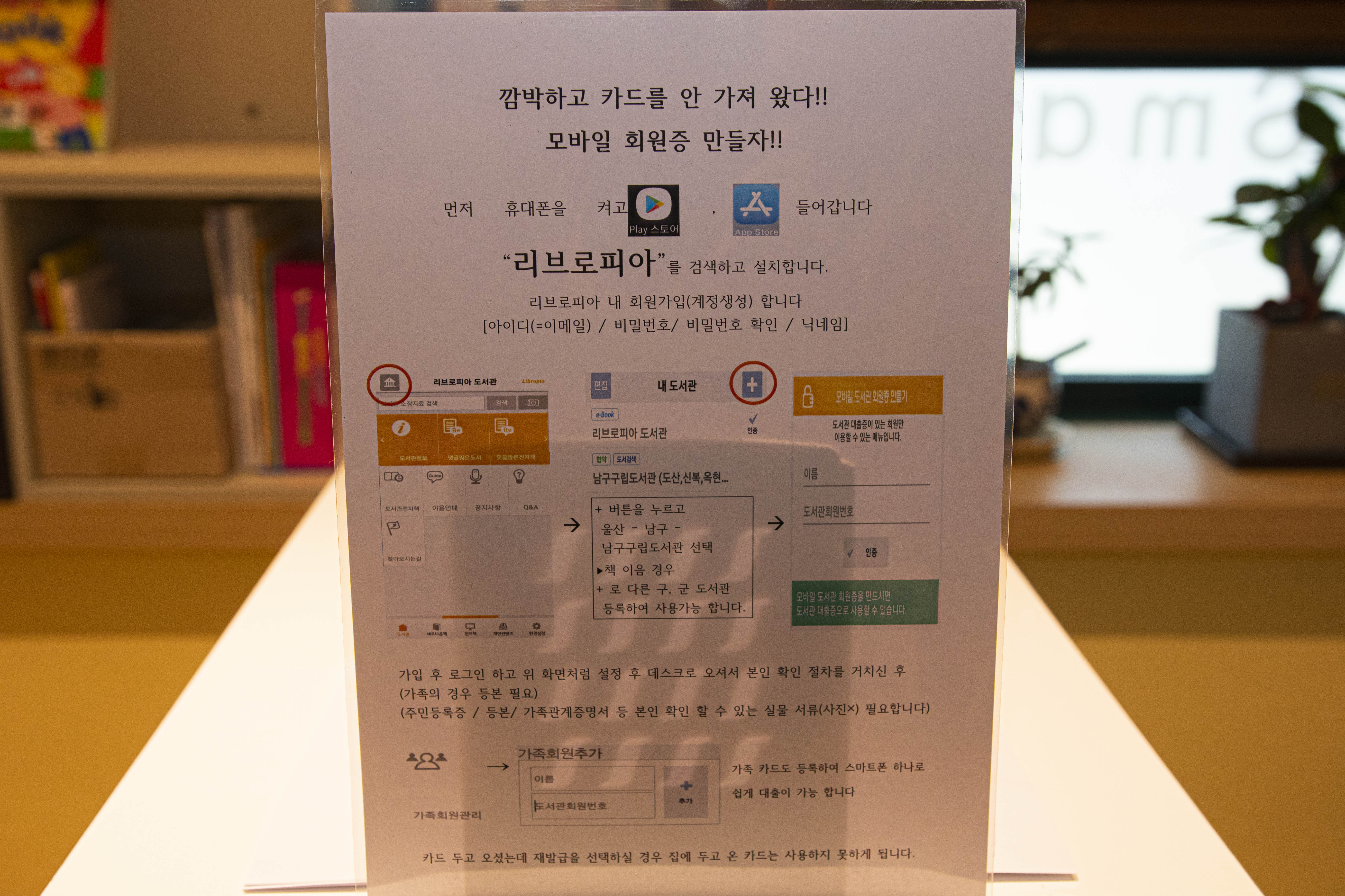 바로 '리브로피아'라는 앱을 설치하시면 되는데 앱을 설치 후 '남구구립도서관'을 선택하신 뒤 모바일 도서관 회원증을 만드신 뒤 데스크에서 본인 확인 절차만 하시면 모바일로 남구 내 도서관을 쉽게 이용하실수가 있습니다.
