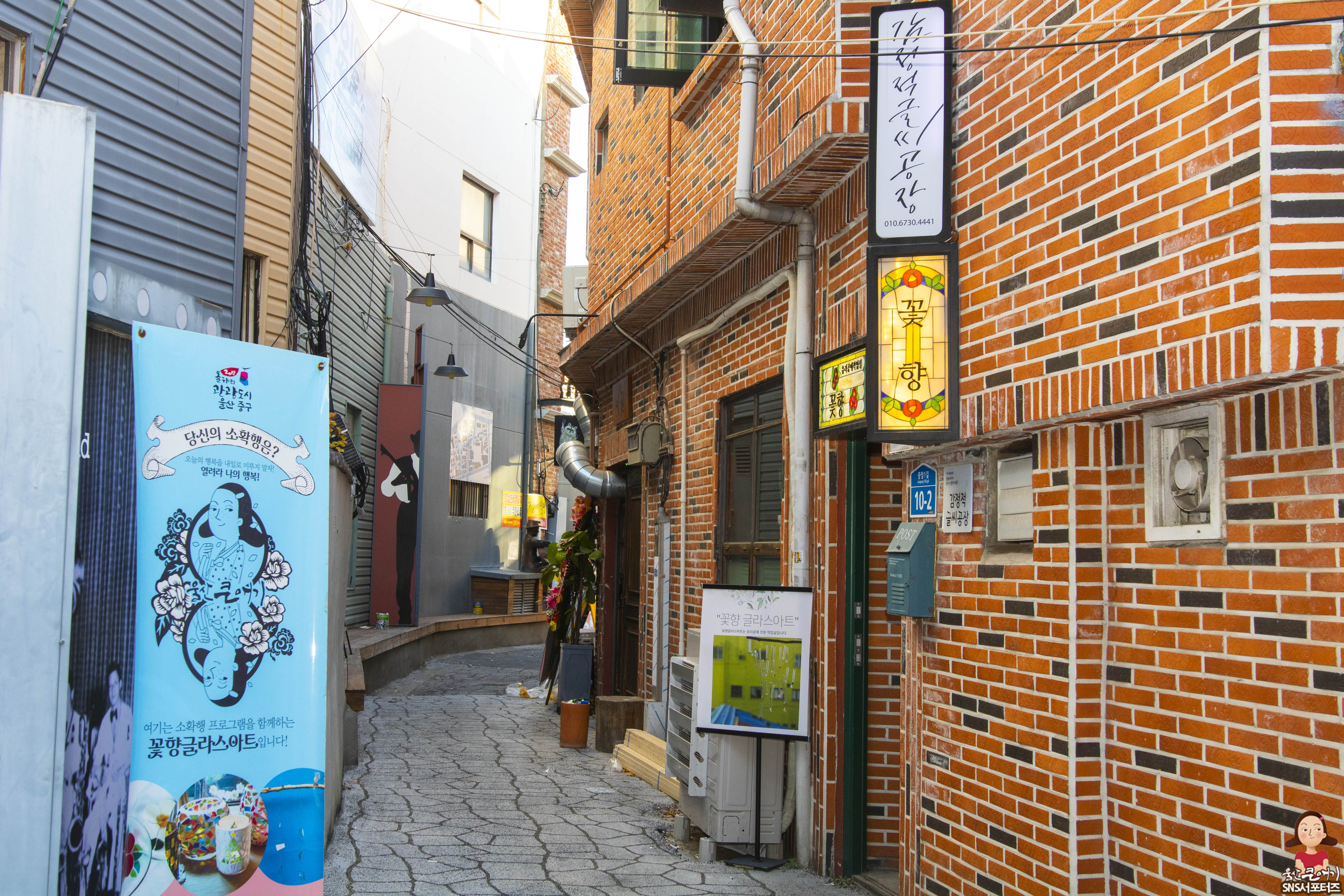 원도심이 쇠퇴의 길에서 벗어나 새로운 부흥의 시작을 알리기 위해 빈 점포들은 문화시설들이 들어서고 어둑한 골목길은 각종 벽화들로 입혀지면서 현재의 이쁘고 멋진 성남동 골목길이 되었습니다. 각기의 골목마다 스토리가 있죠.