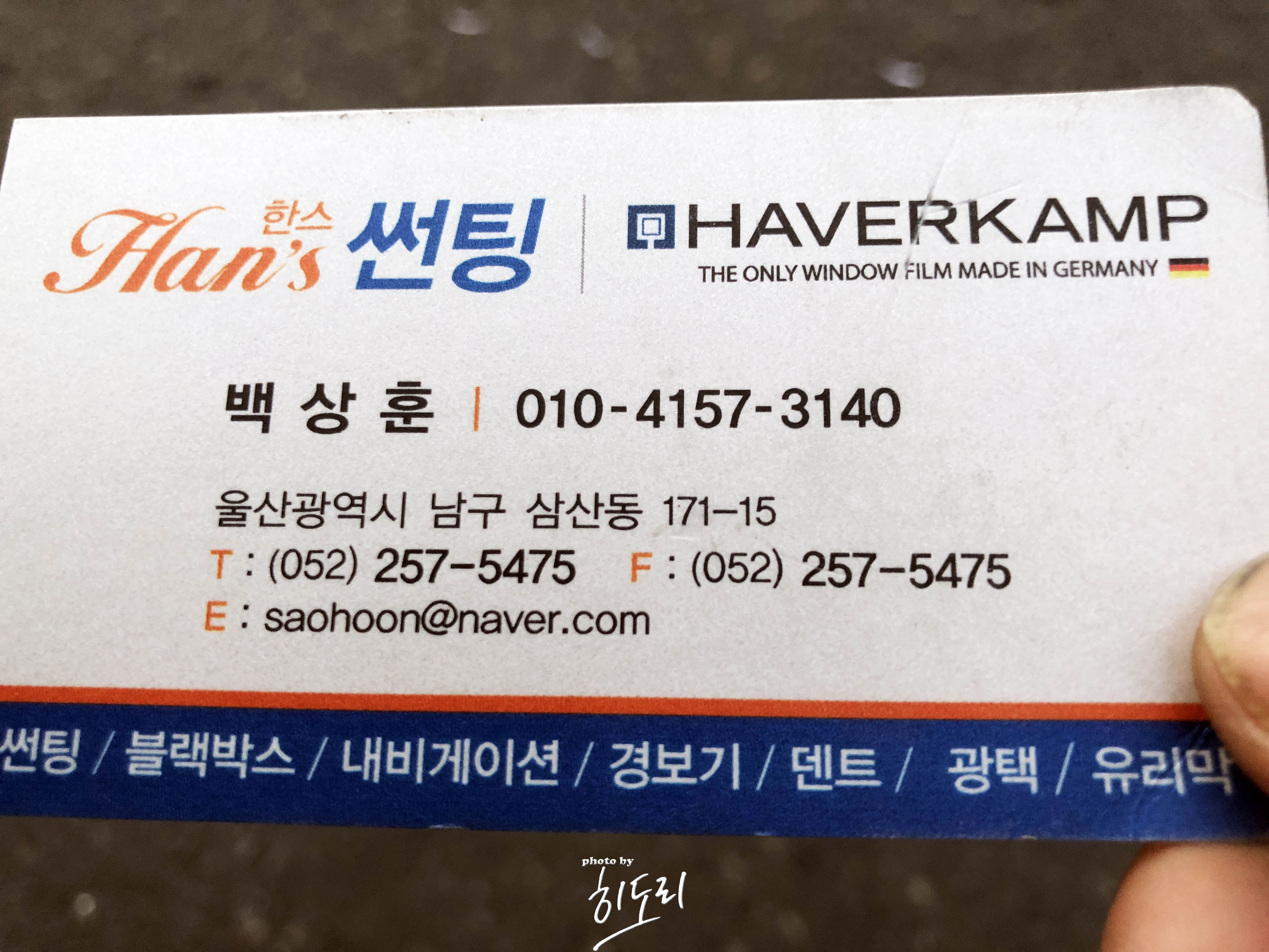 아무튼 울산에서 썬팅이나 블랙박스,네비,광택등 작업예정이신분들은 울산 삼산에 위치한 한스덴트에 한번 문의 해보세요. 사장님도 친절하고 꽤 저렴하게 작업을 할수 있답니다.