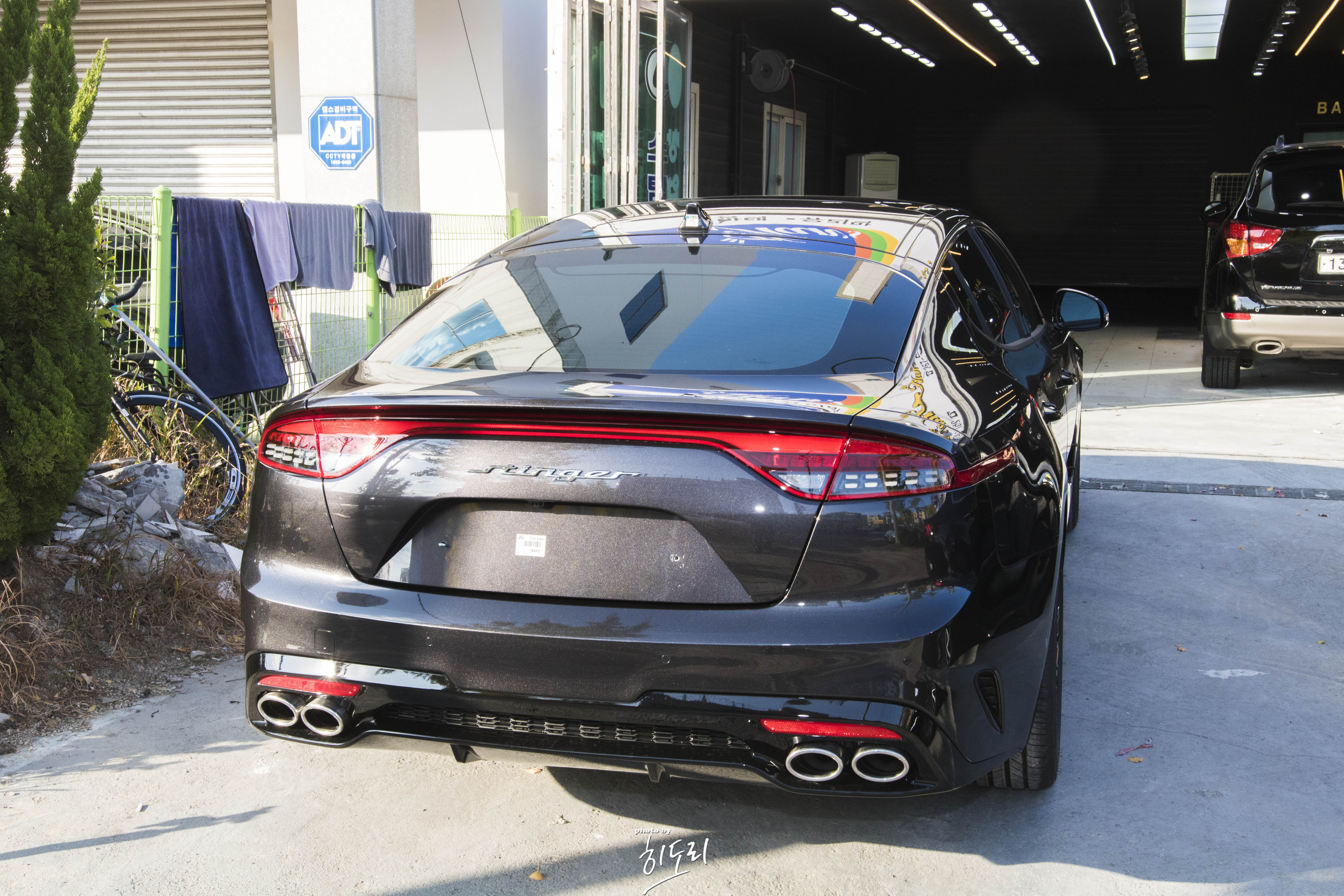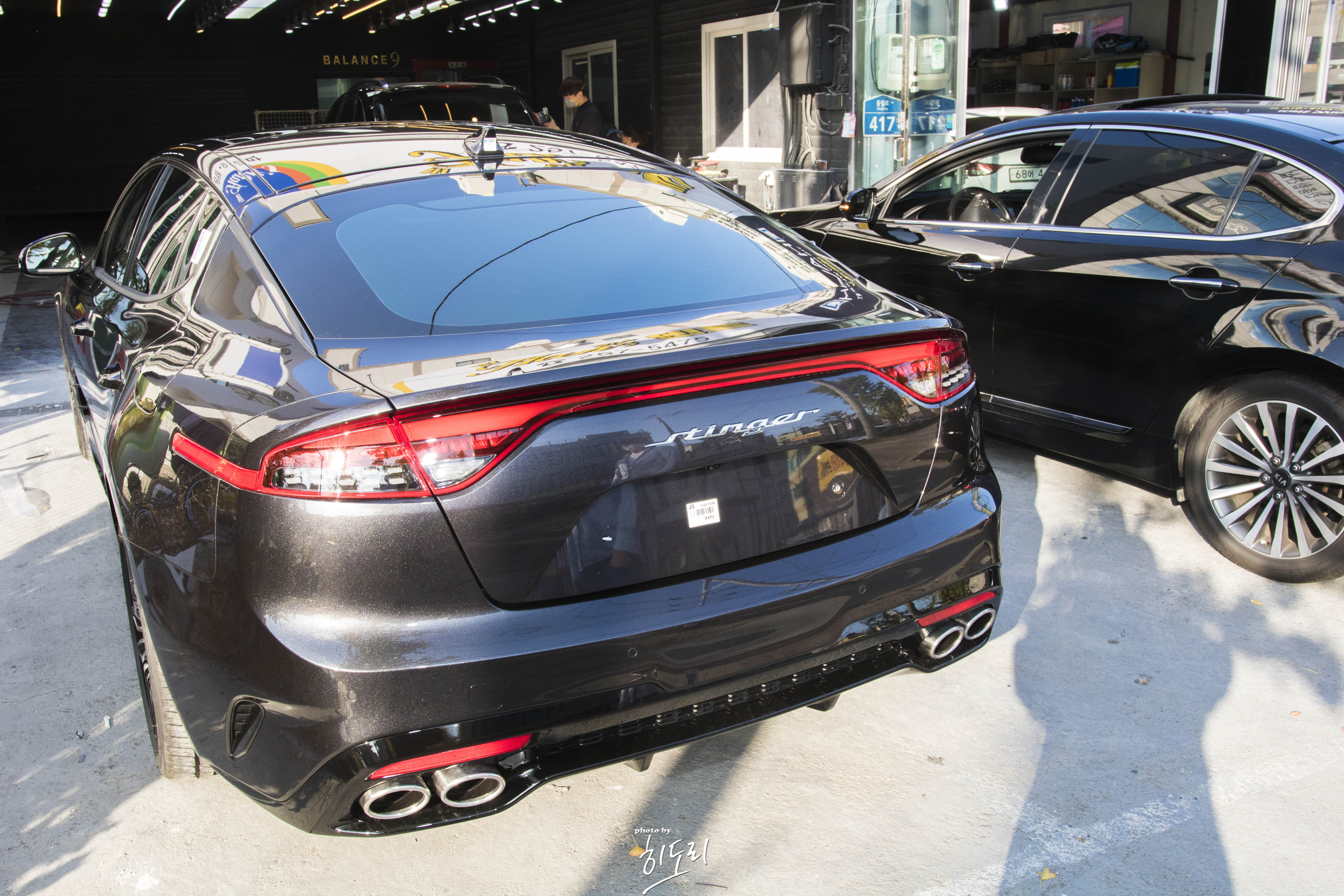 그리고 스팅어인 경우 뒷도어에 브레이크등이 있어서 보통 저부분은 썬팅지를 안입히는 경우가 많은데 그런 경우 뭔가 일체감이 없어보여서 개인적으로 싫어하는편입니다만~