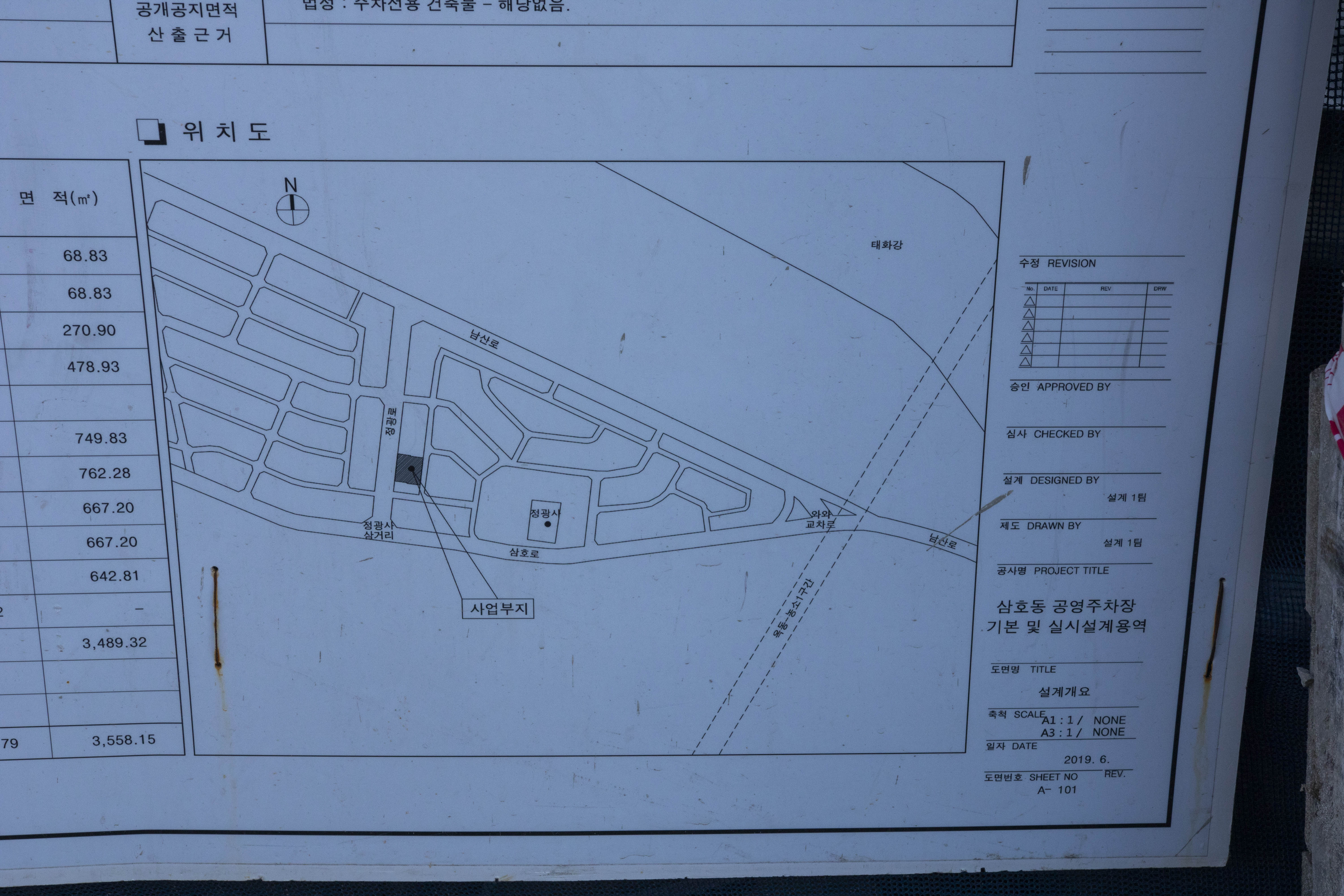 다행히도 현재는 심각한 주차난으로 오랫동안 고통을 받아온 삼호동 주민들을 위해 사업구역 내 노외주차장 임시설치 공사를 하여 삼호주공아파트 인근 국유지 등을 활용해 총 110면 규모의 개방형 공영주차장을 조성이 되어 있습니다. 기능복합형 공영주차장이 완공이 되기전까지 사용할수 있는 주차공간이 확보가 되었습니다.