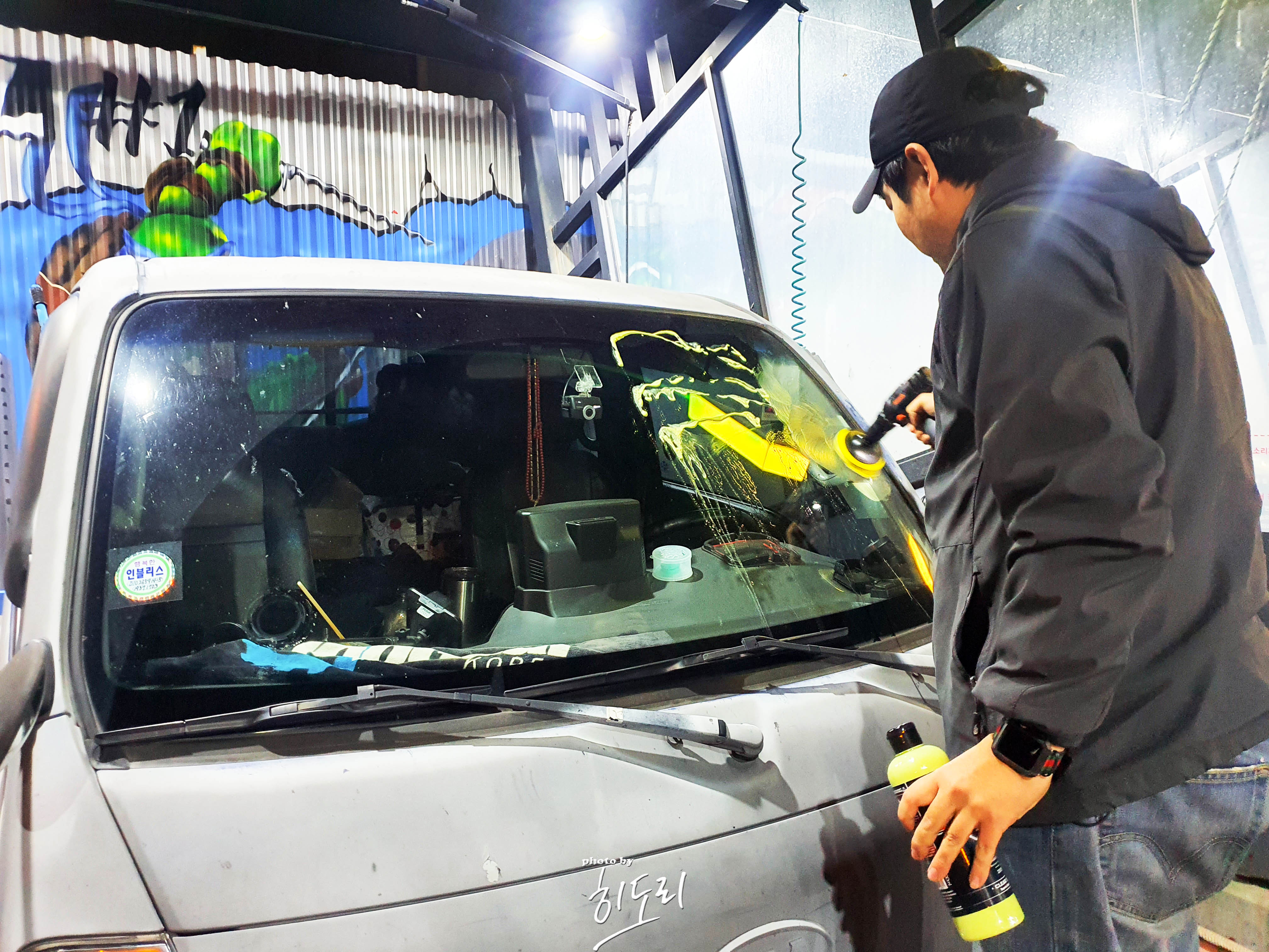 물방울이 또로록~ 주르륵 흐르는것을 보기 위해 첫번째로 유리막제거를 한것이죠.