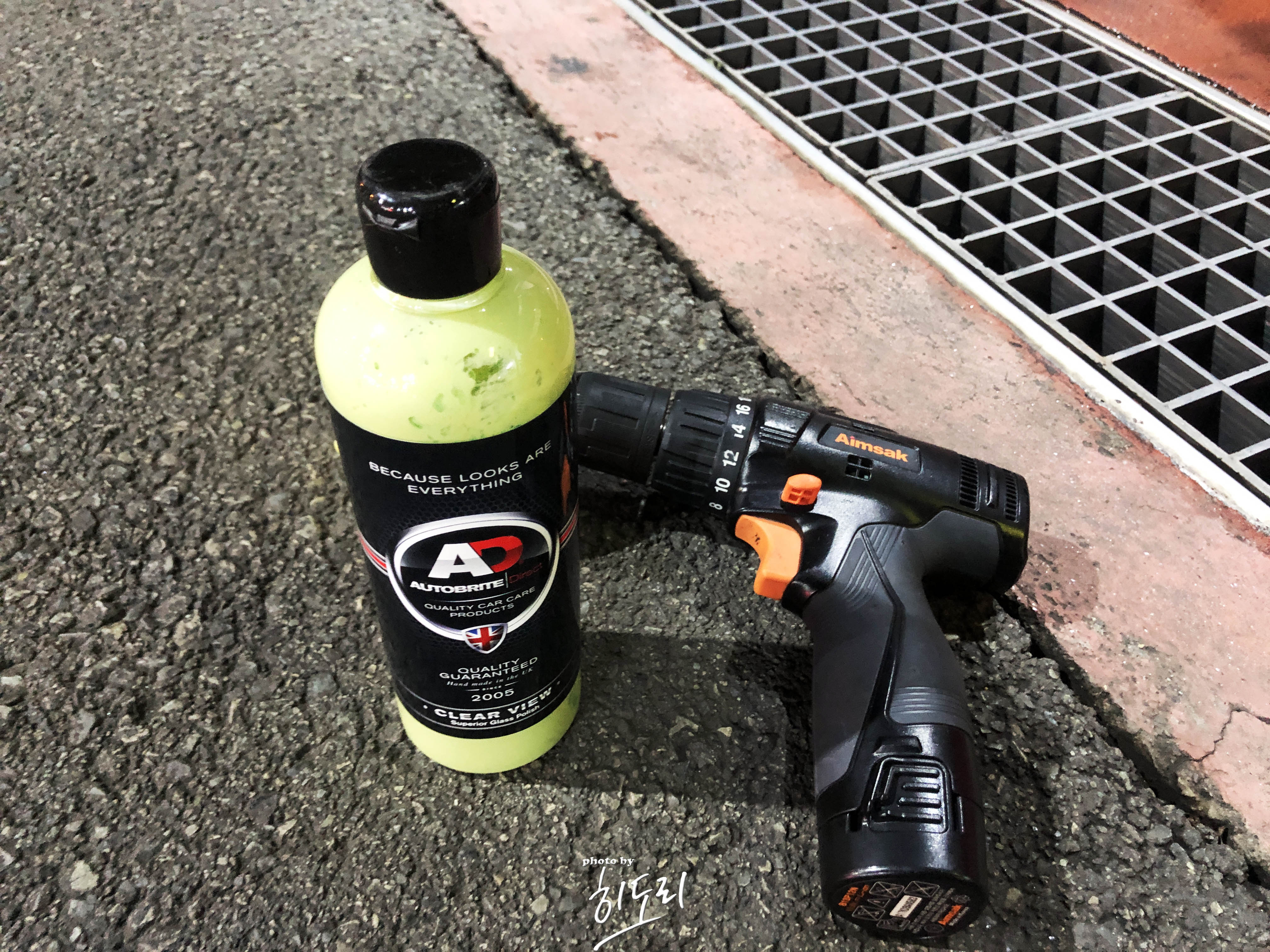 그냥 전동드릴 전용 폴리싱패드 하나 구입하는게 훨씬 쉽고 시공도 빠릅니다.
