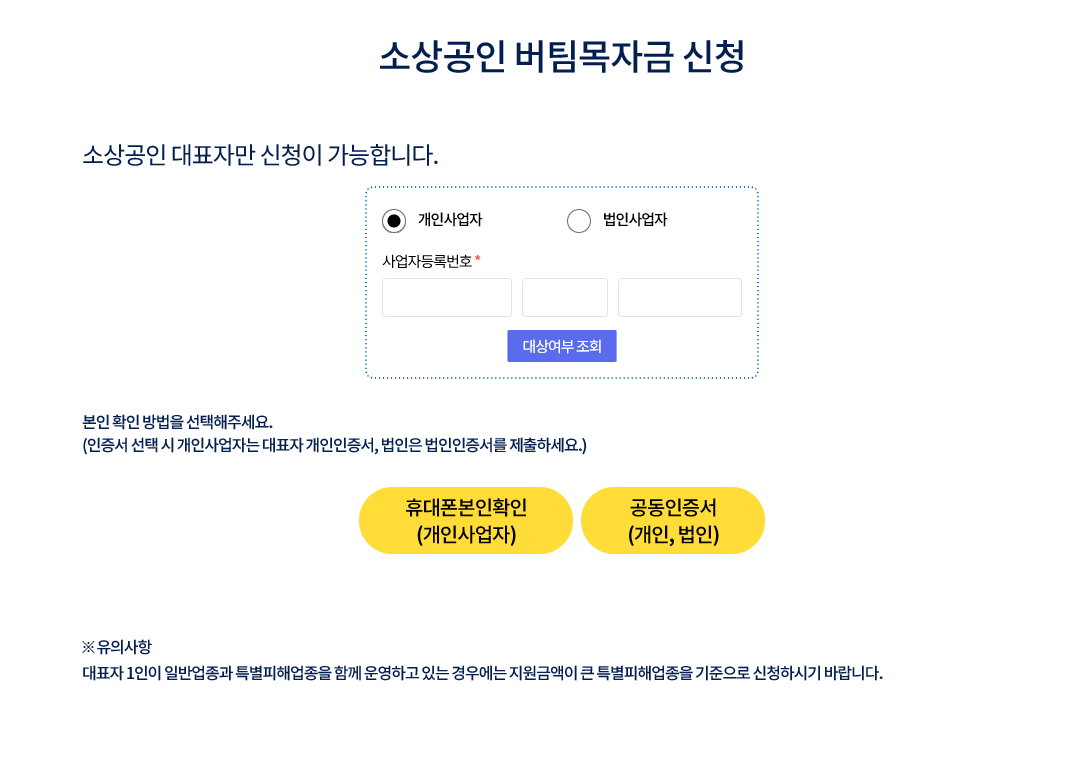 앞서 적었듯 사업자번호를 입력하시면 신청대상 유무가 확인이 됩니다.