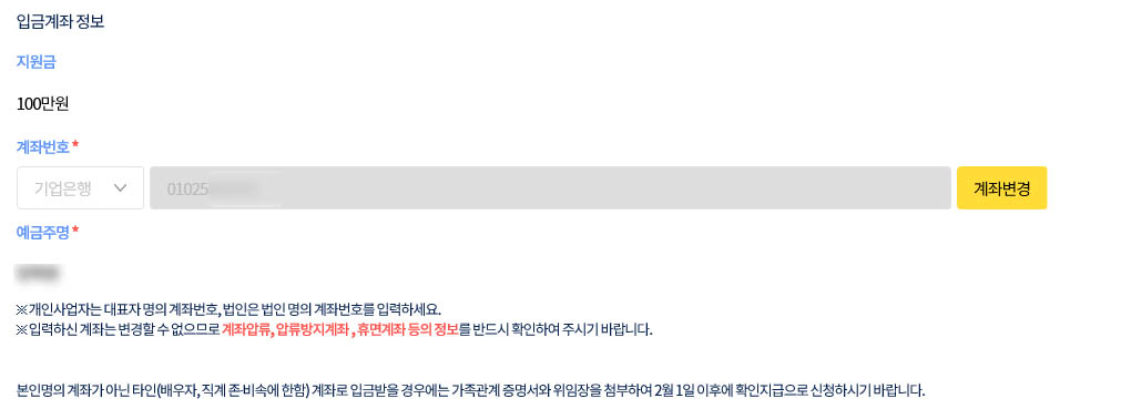즉! 저번 추석전에 새희망자금을 신청할때 입력을 해서 그런지 계좌번호가 자동으로 입력되어 있네요.