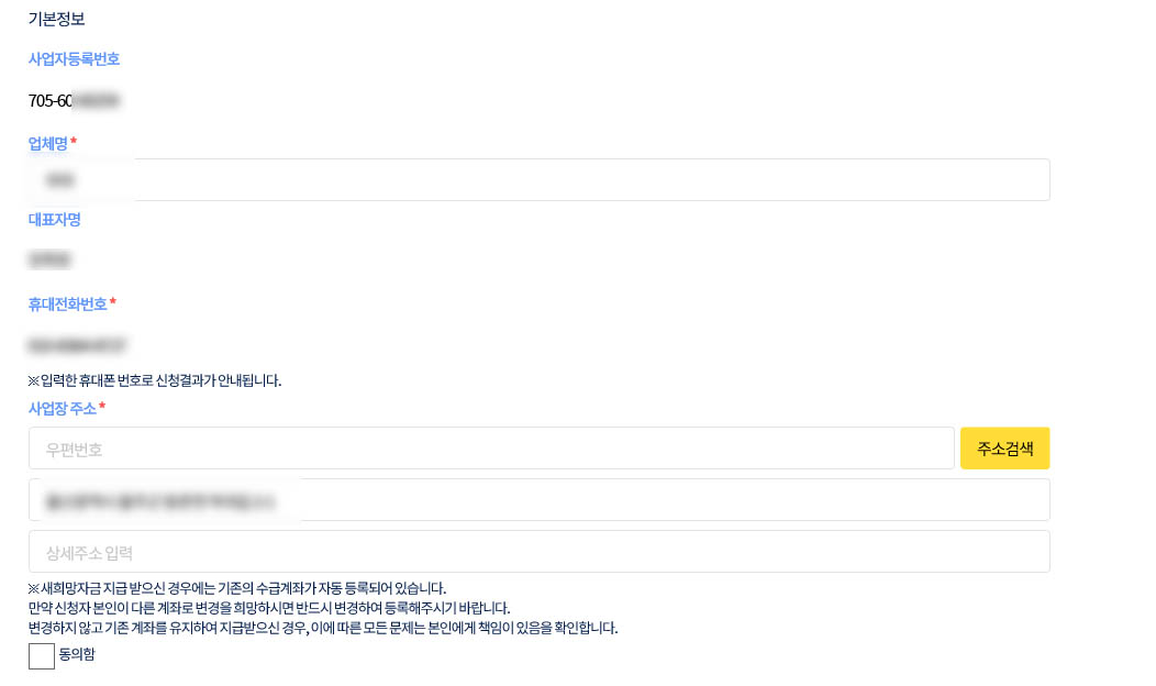 사업장주소와 계좌번호를 확인해주세요.