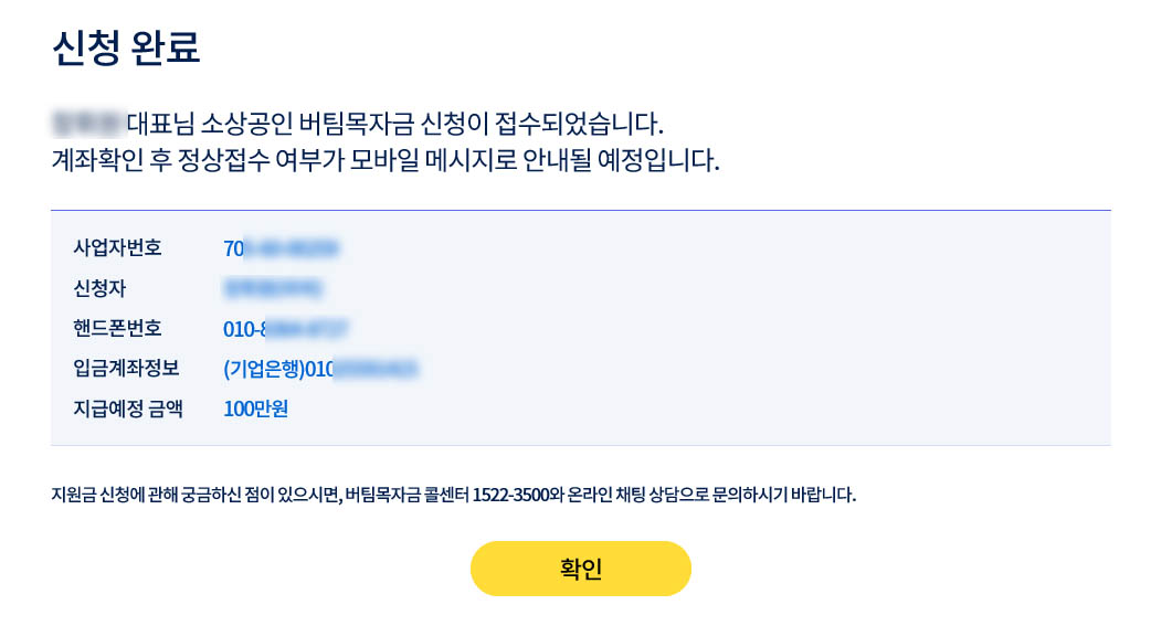 지원금액을 확인하시고 확인을 눌려주시면~