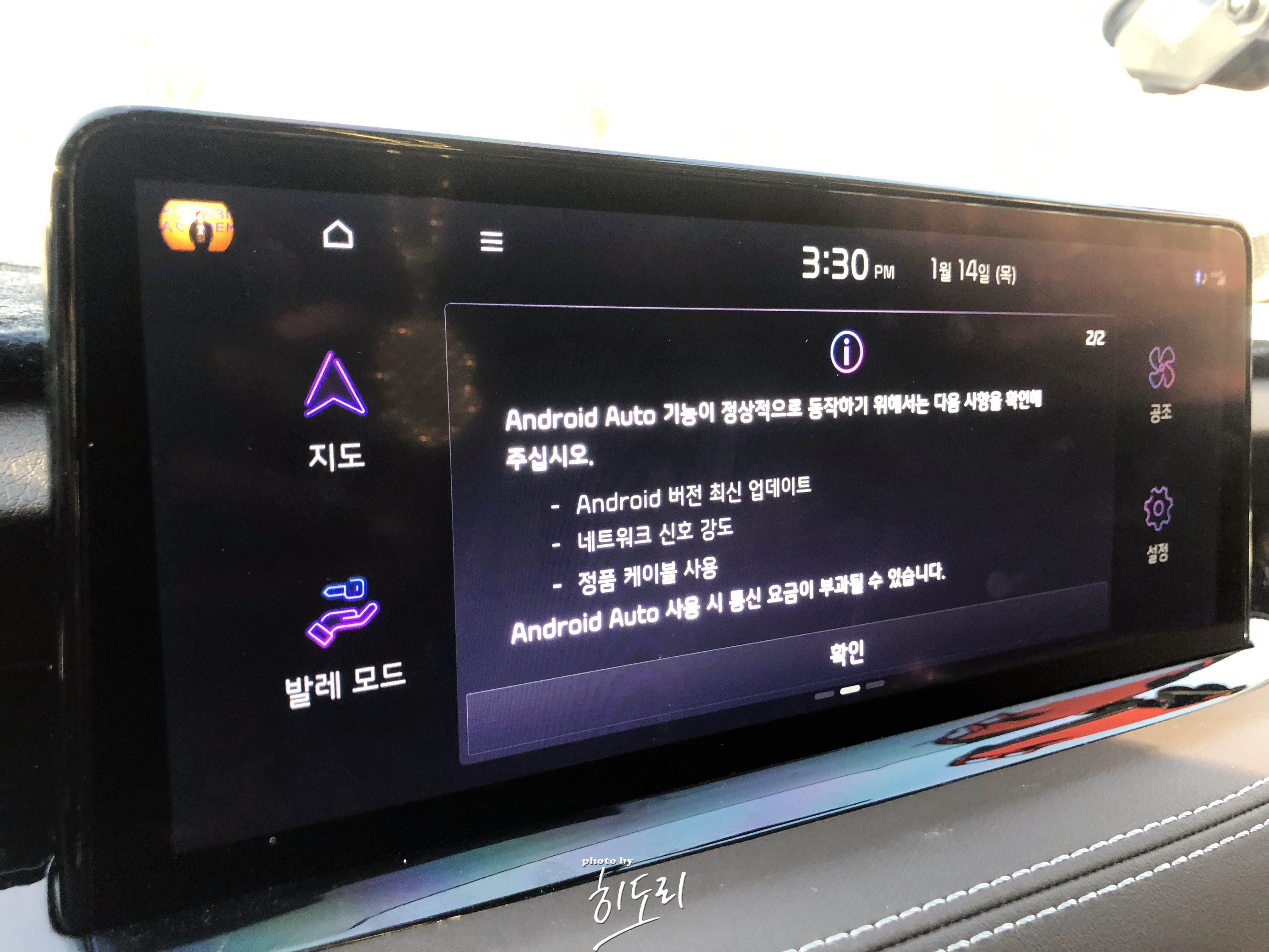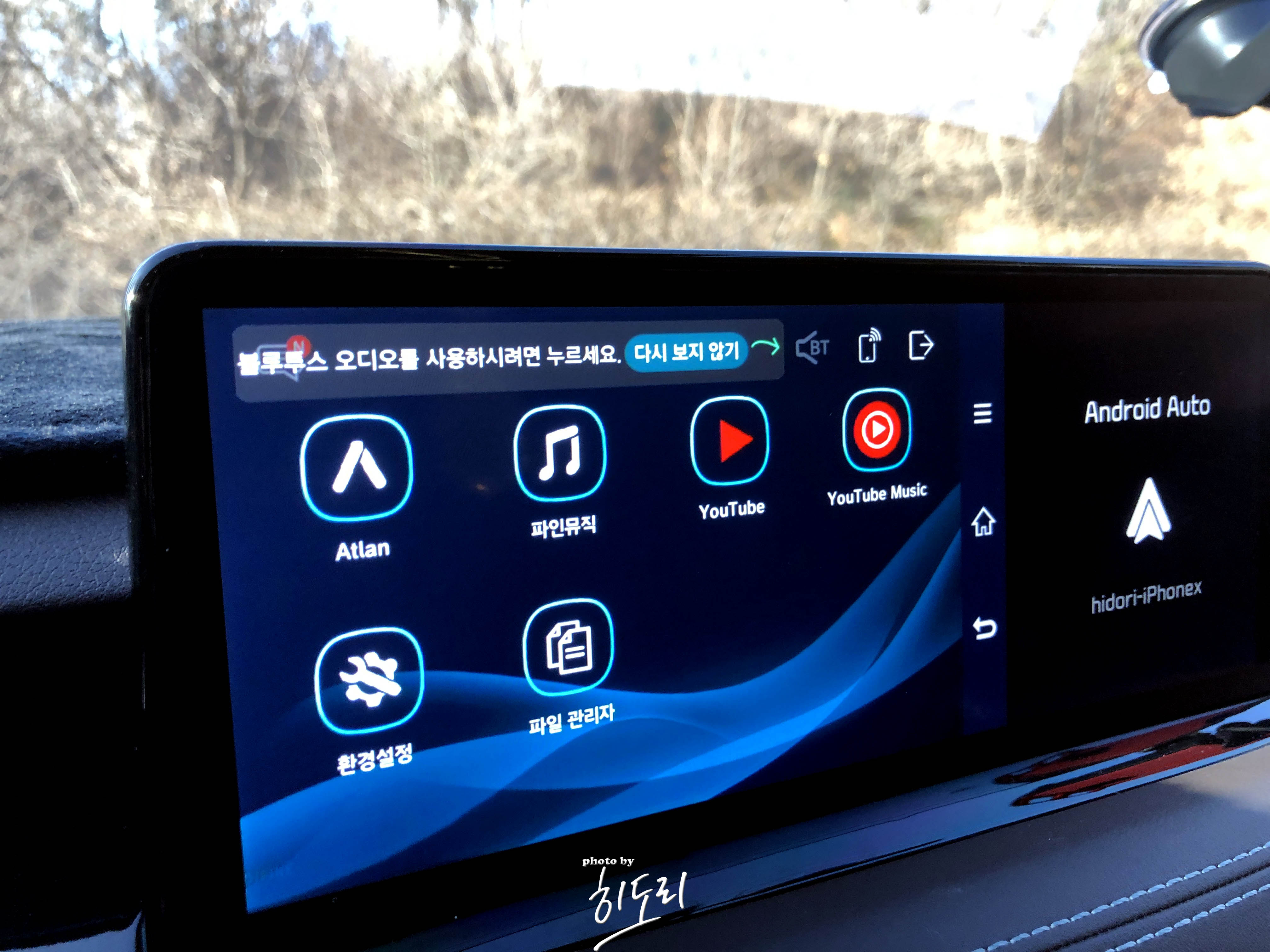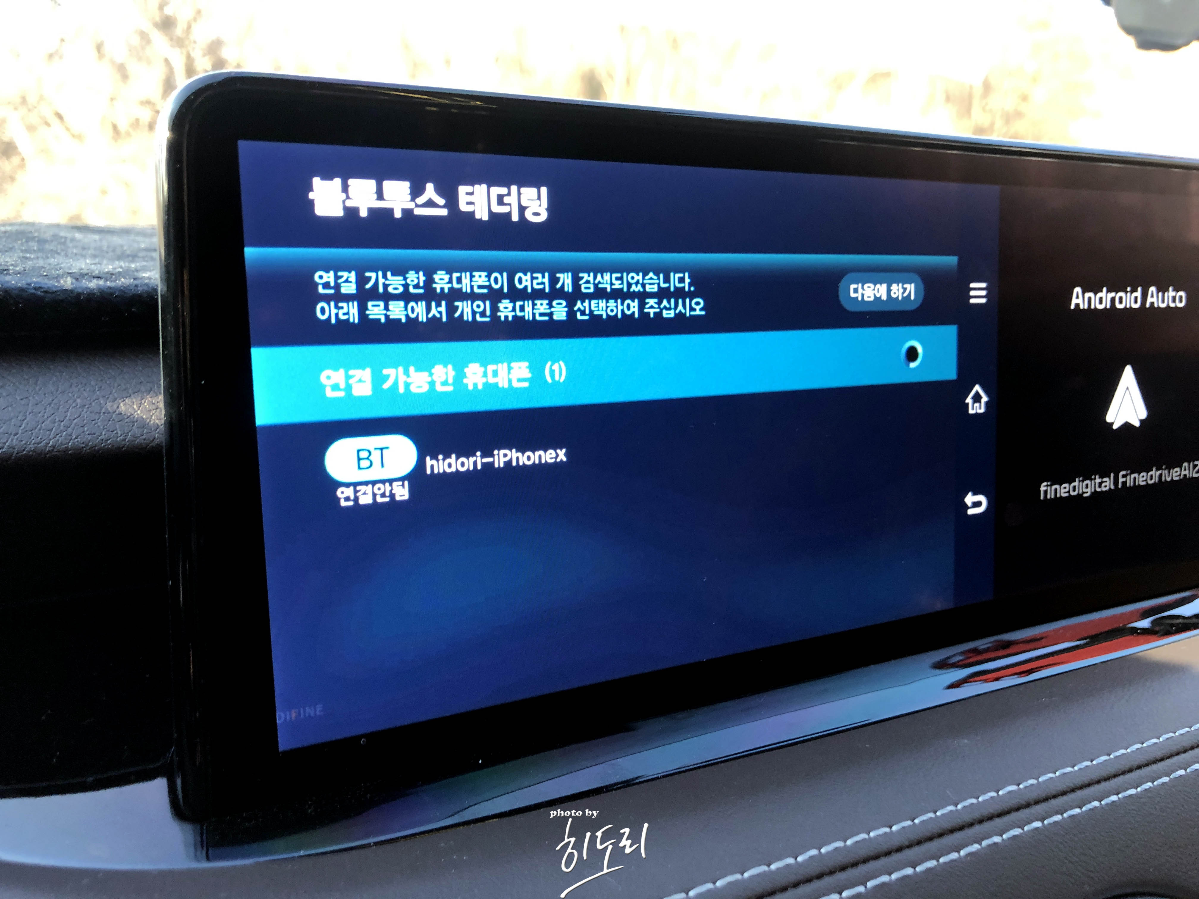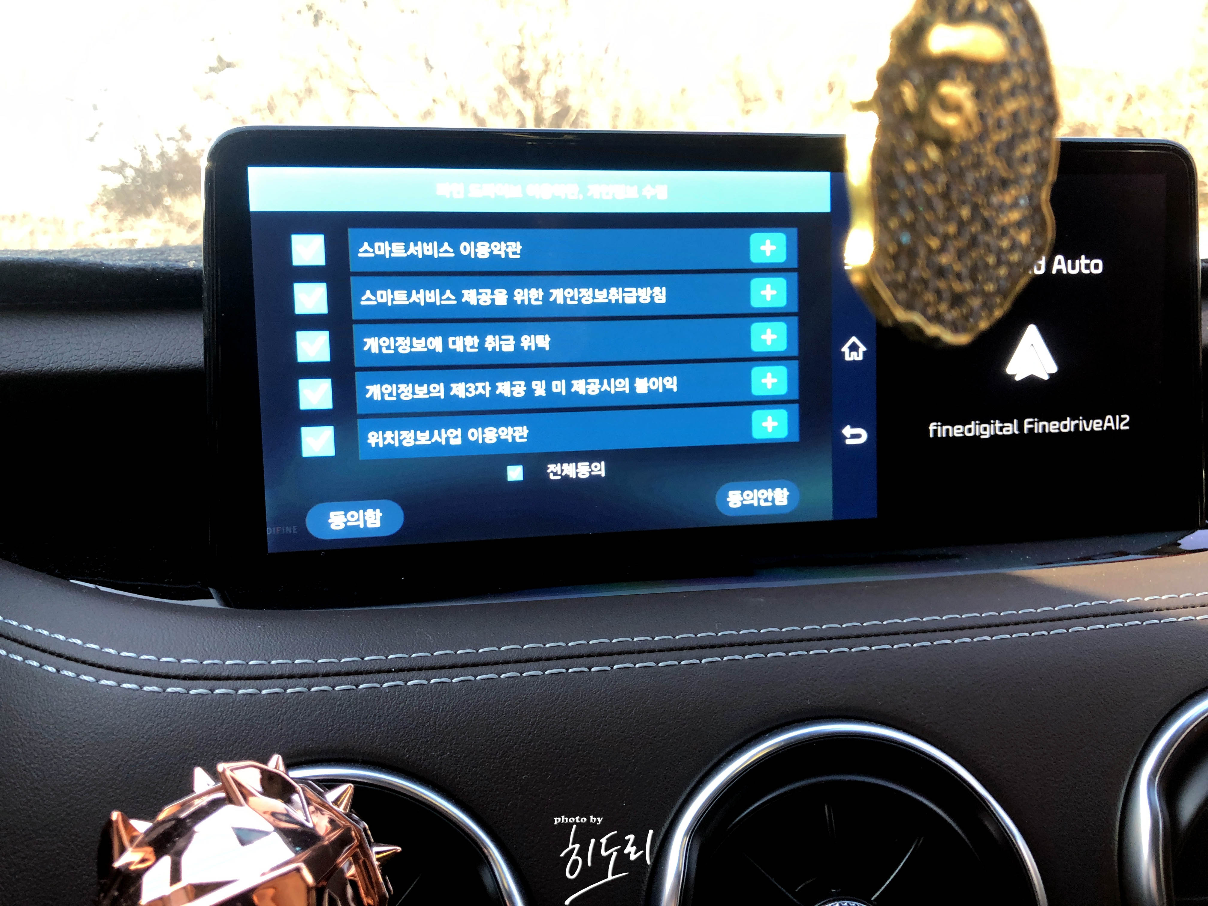 인식을 하고 난 뒤 계기판에서 파인드라이브~ 라는 음성이 흘러나오며 안드로이드 오토가 실행이 되며 파인드라이브 AI2가 차량내 인식 완료!