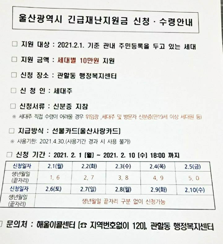 기존 울산페이카드와 연동해서 사용한다기 보다 선불카드가 지급이 되는데 2021년 2월 1일부터 수령이 가능합니다.