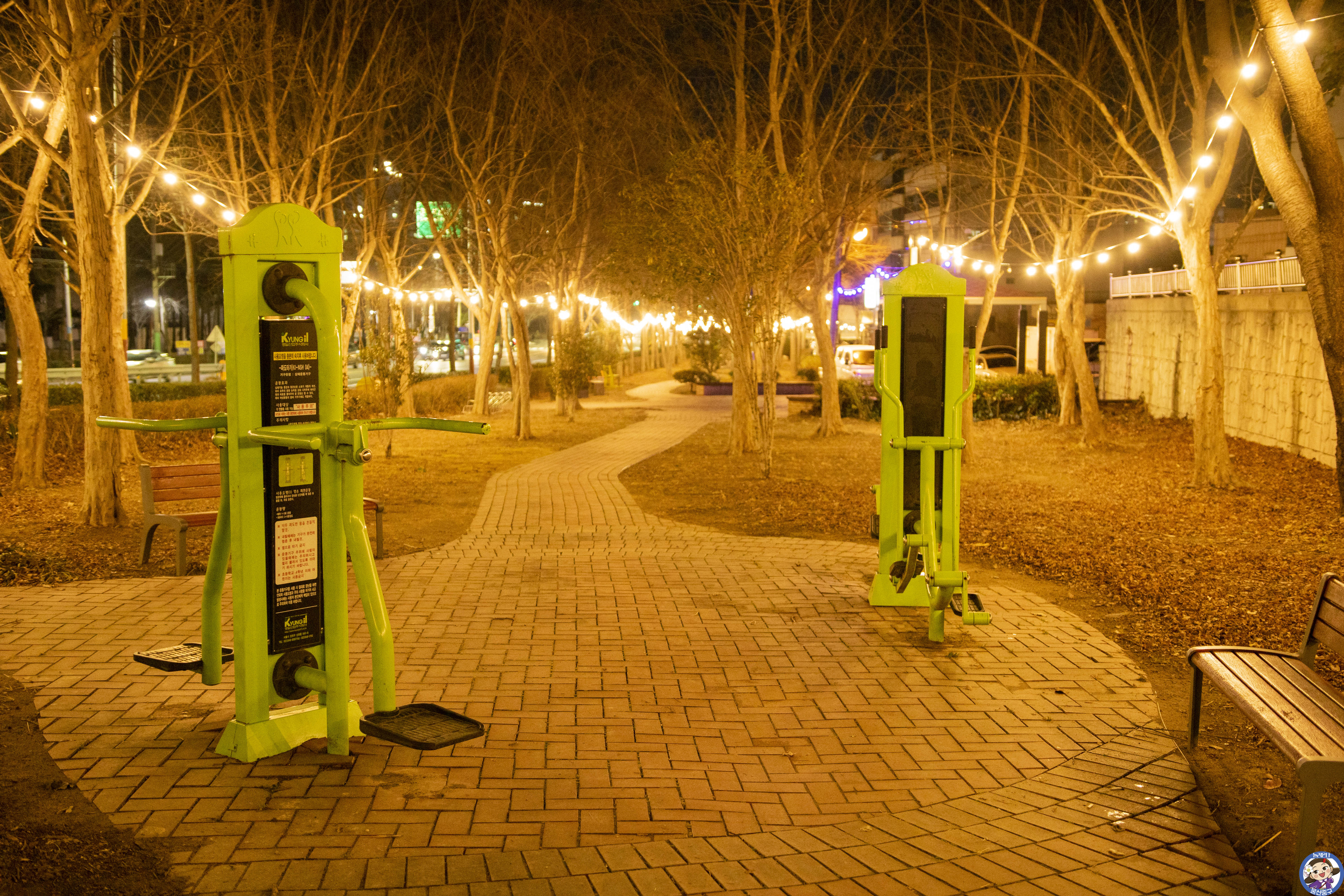 거리 내 구민들이 운동을 할수 있는 작은 산책로와 운동기기들이 설치되어 있으며 여름에는 햇빛을 피해 나무그늘 밑에서 잠시 쉴수 있는 평상이 설치되어 있는데 겨울철에는 구민들이 잠시나마 추위를 피하기 위해 비닐바락막이 설치되어 있습니다.
