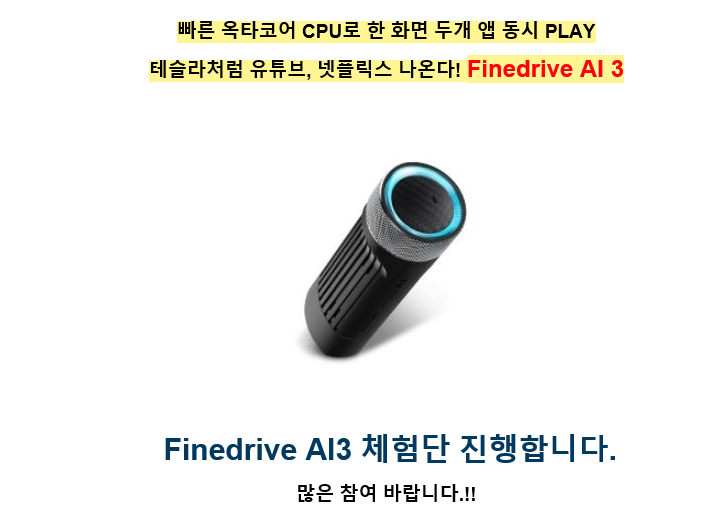 FinedriveAI3#옥타코어CPU#1초장착#넷플릭스#유튜브#아틀란5#테슬라#스트리밍스틱