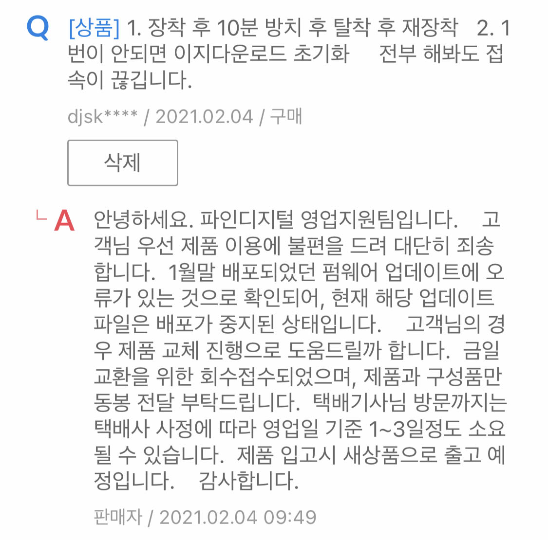 이러한것으로 보아 제품 문제가 아닌 프로그램 단순 문제로 AI2 업데이트가 된다면 큰 문제가 없을듯 합니다.