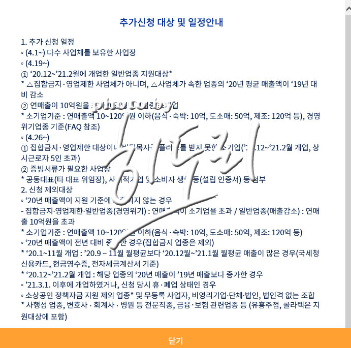 단 4월1일부터는 1인이 다수의 지원대상 사업체를 운영하는 경우 4.1일(4일차)부터 신청이 가능합니다.