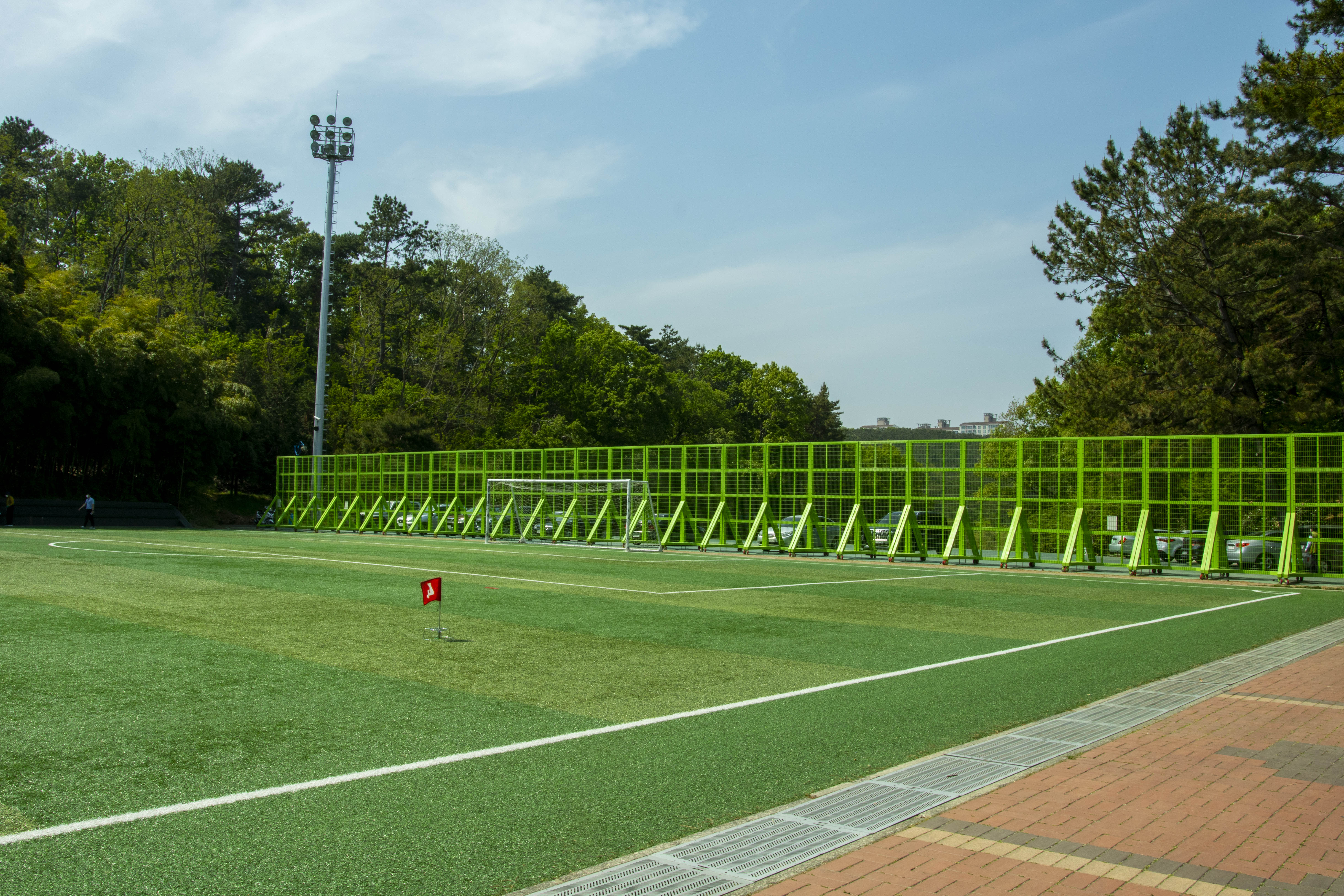 축구장 바로 옆 길이 있습니다.
