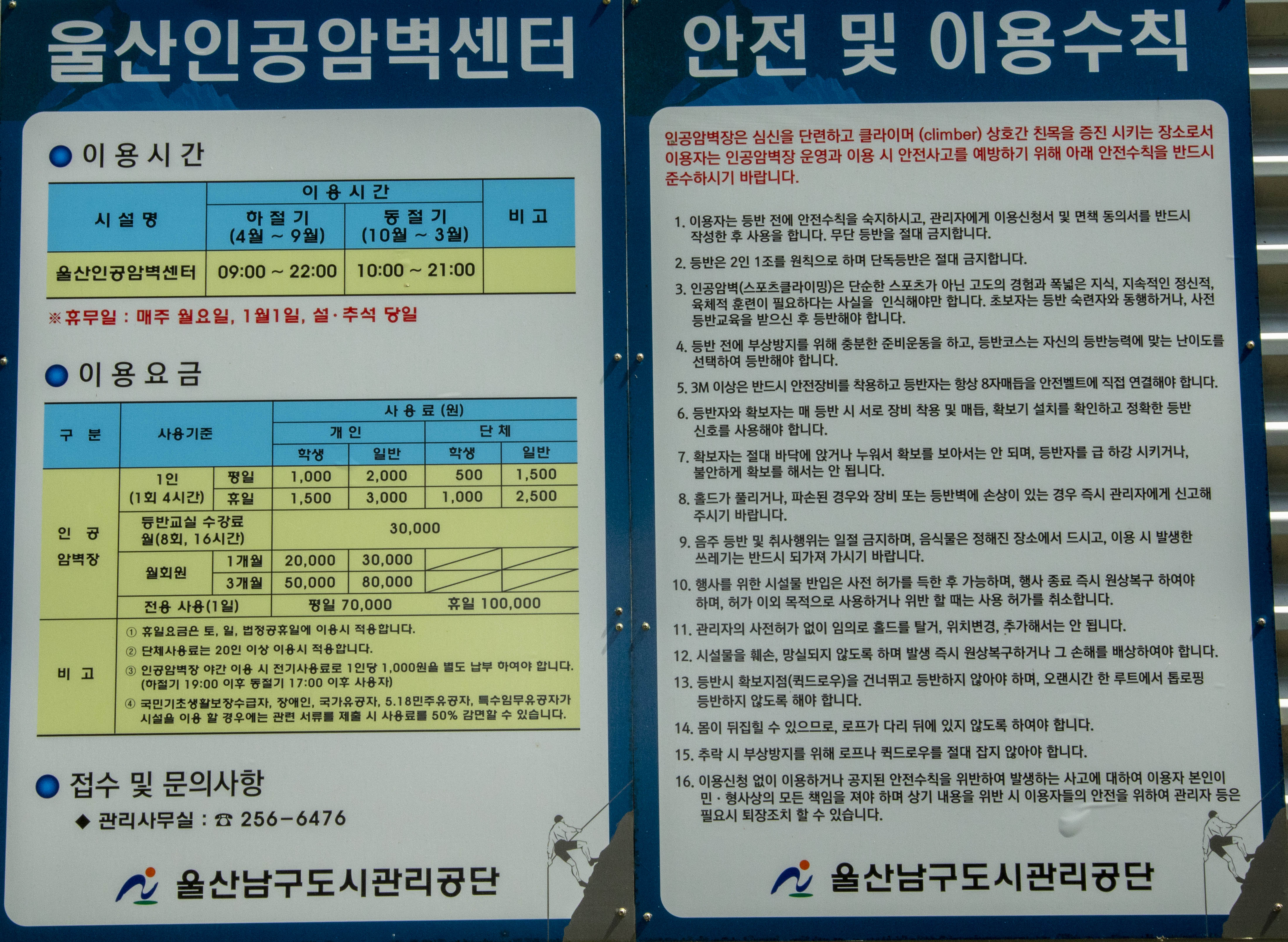회원모집은 매월 말일에 신청을 받는다고 하니 관심이 있으신분들은 052-256-6476(울산인공암벽 관리실)로 문의 해보시기 바랍니다.