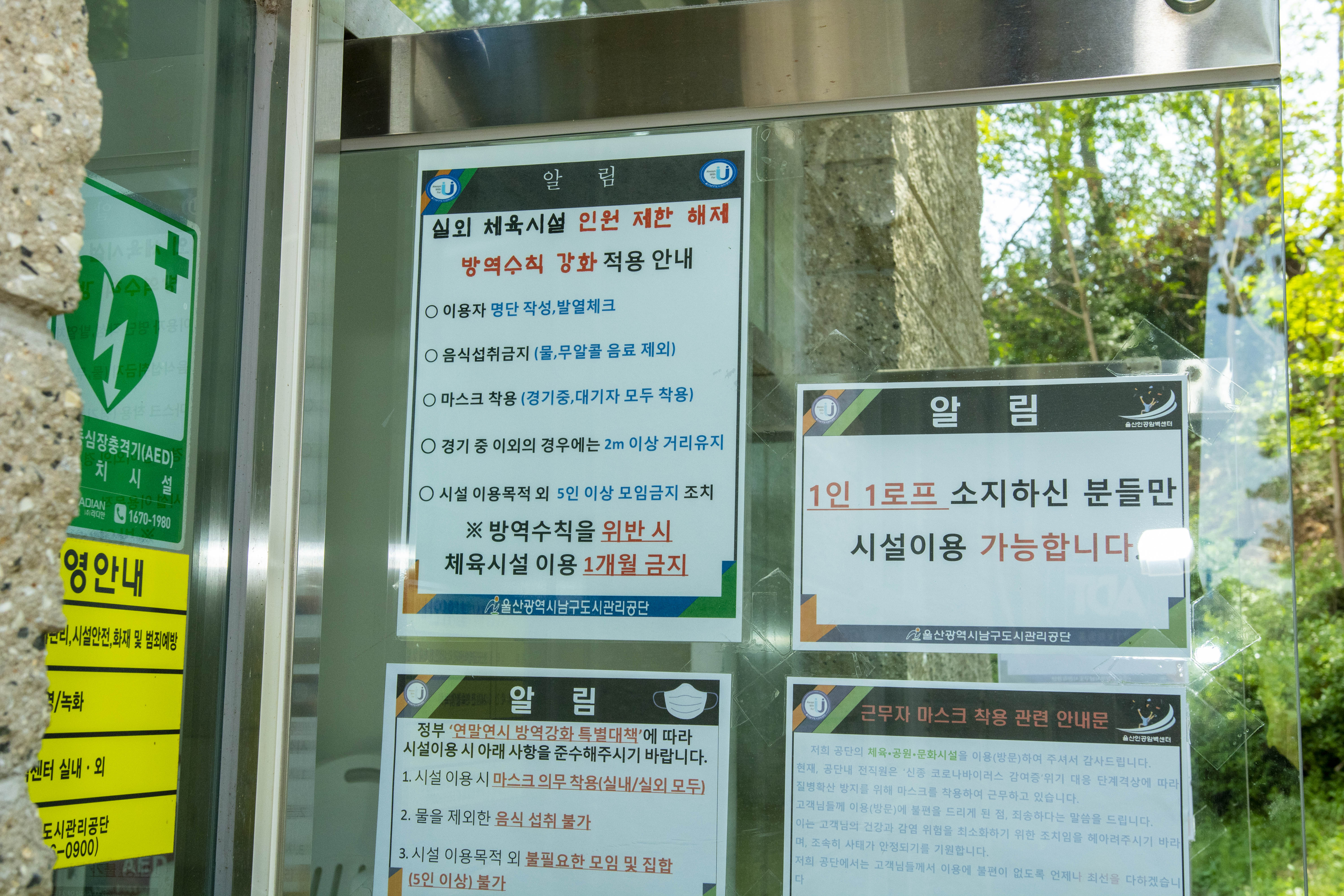 현재 코로나19가 다시 기승인데 방역수칙을 잘지켜서 실외 체육시설을 이용하시기 바랍니다.
