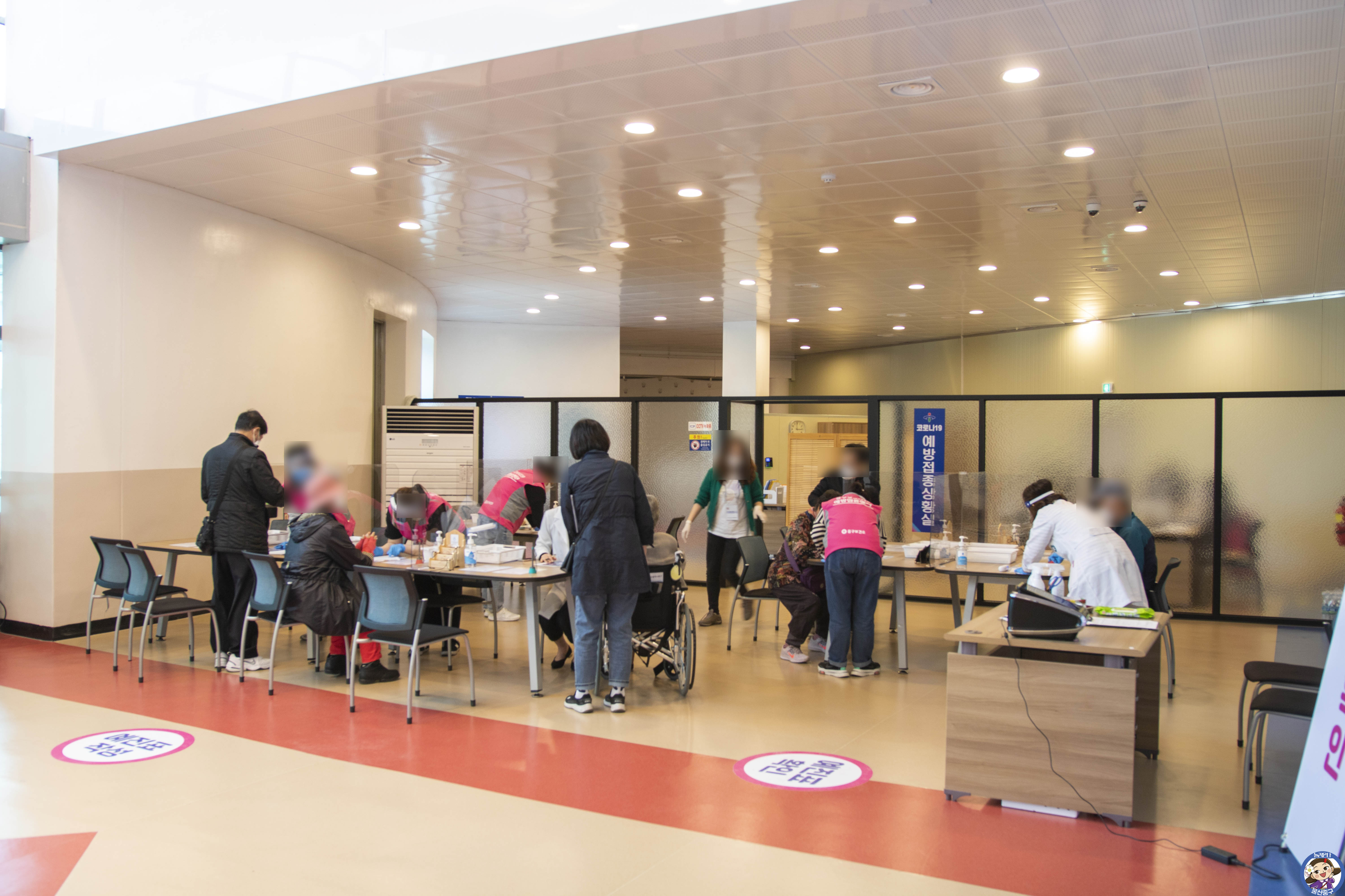 예방접종센터에 방문하시면 먼저 입구에서 신분확인과 손소독,체온측정 QR코드 인증을 하시고 안내에 따라 바로 옆으로 이동하신 뒤 예진표 작정을 하신 뒤 예진대기 장소에서 잠시 대기 후 접종부스에서 접종을 하시면 됩니다.