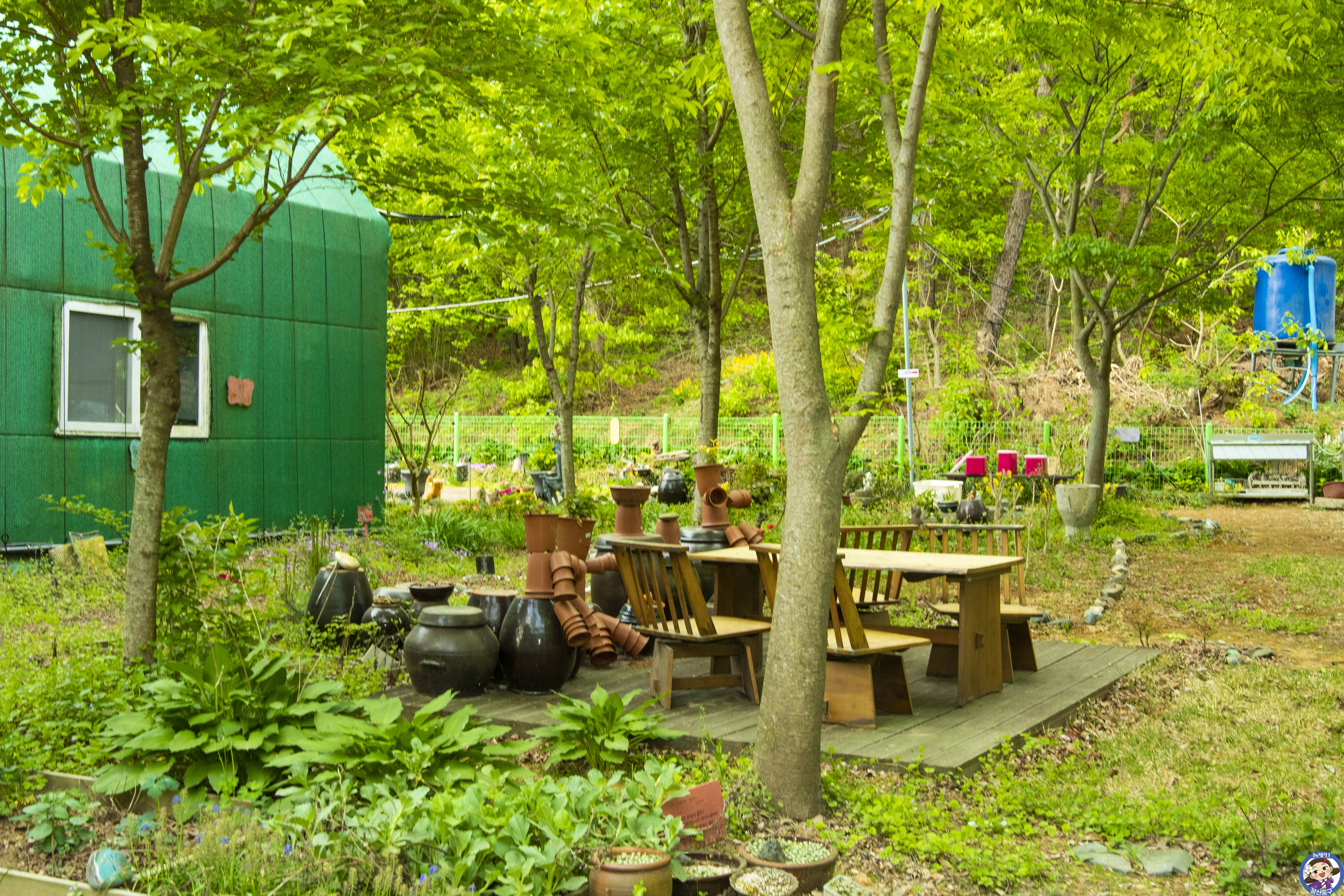 텃밭에 사용하는 물도 이렇게 깨끗한 물을 이용해 물을 주기도 하며 텃밭을 가꾸고 기구들이나 손발을 씻을수 있게 수로도 설치되어 있답니다.