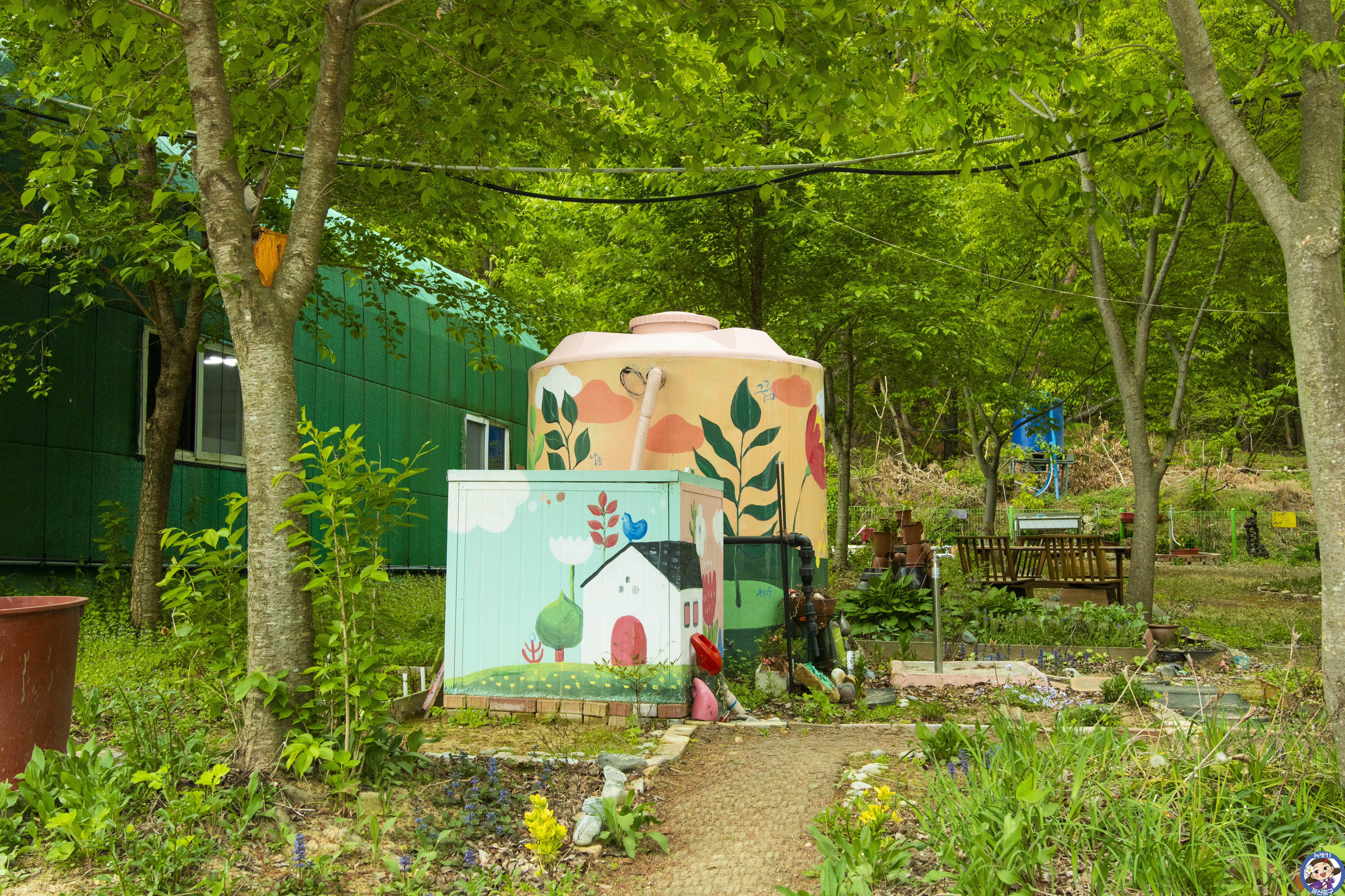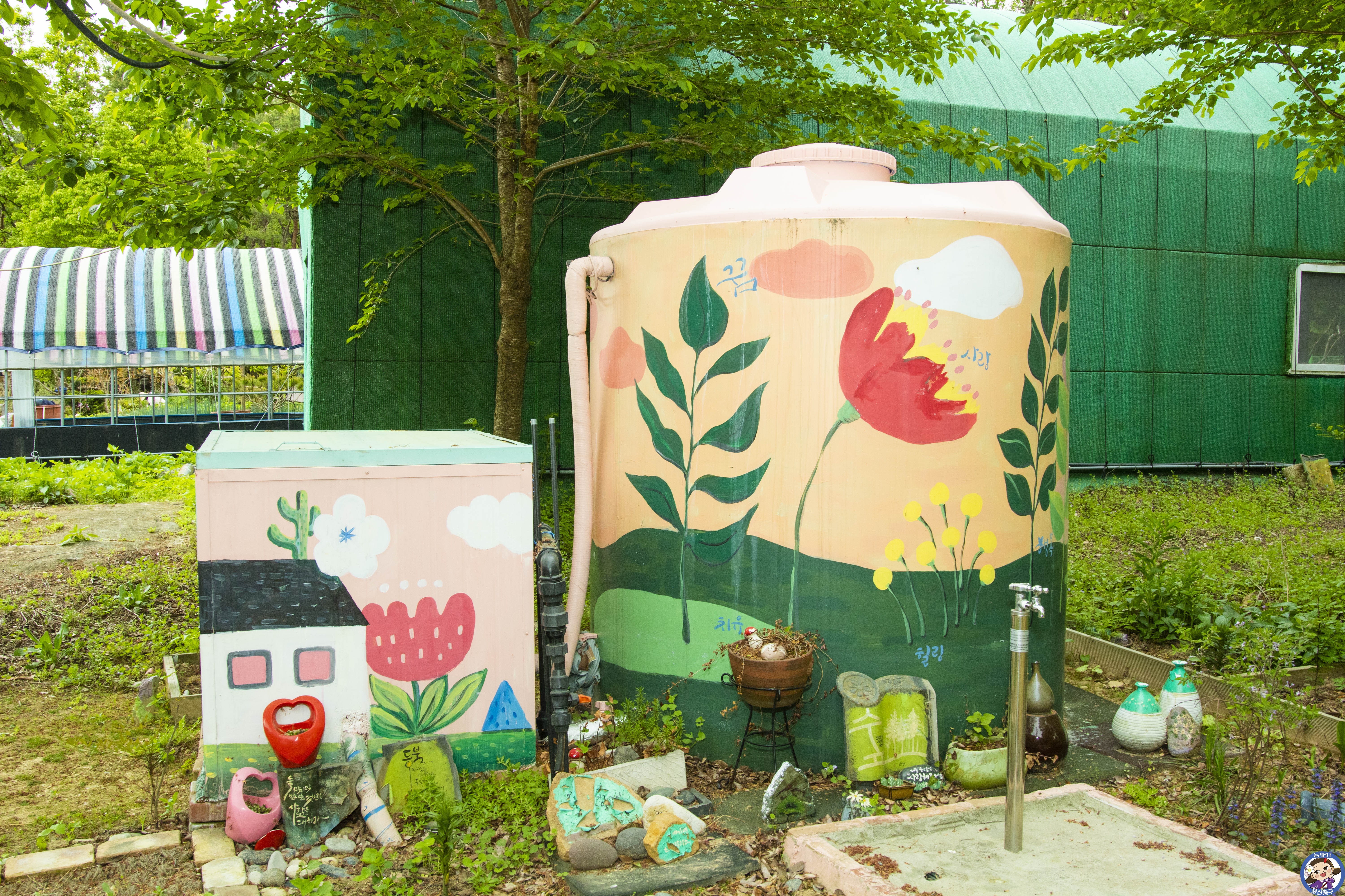 바로 옆은 물통이 있는데 몇년 전 울산 중구청에서 봉사활동으로 농장 곳곳에 이쁜 벽화도 만들었다고 합니다.