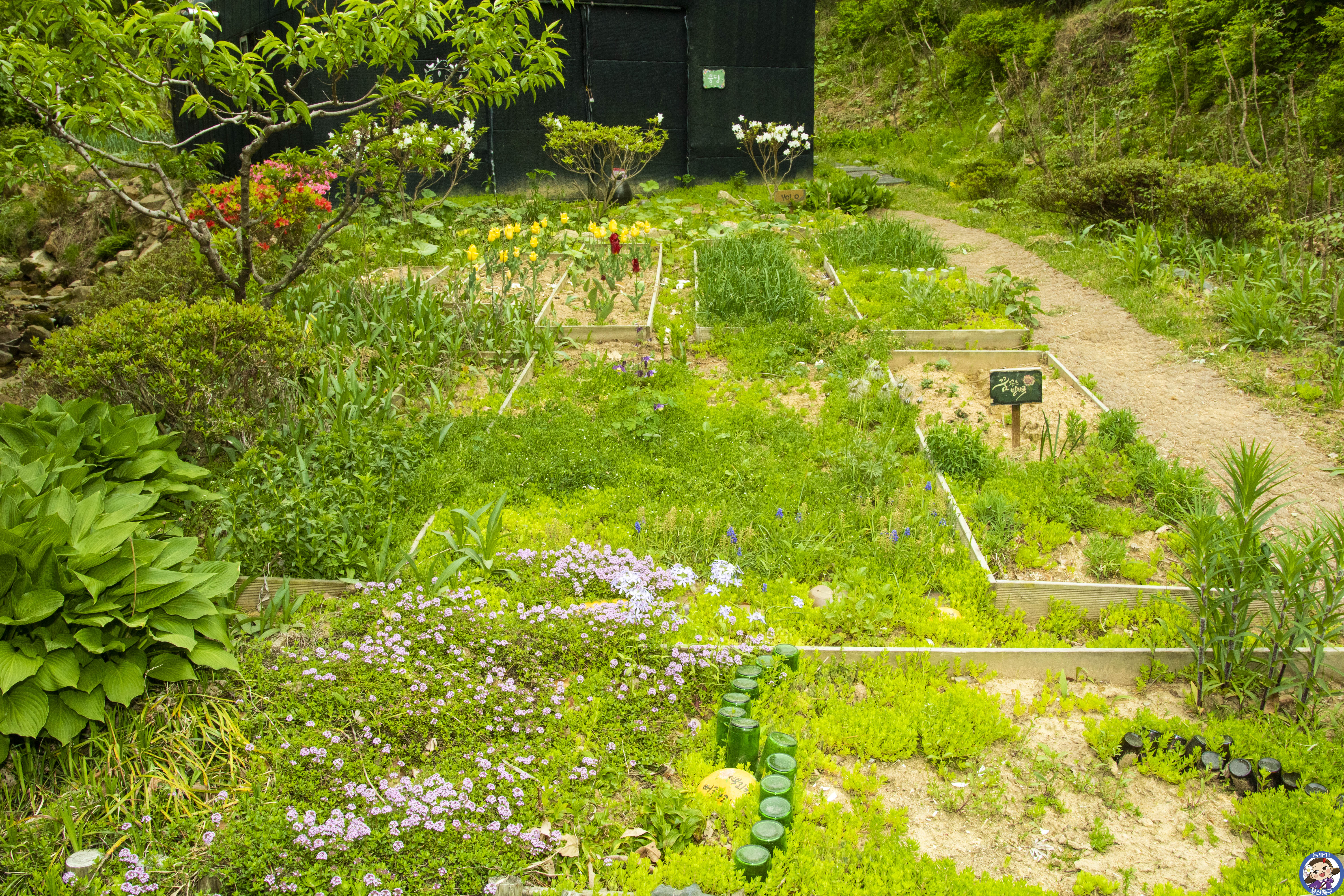 텃밭 주변에 심어져 있는 벌레쫏는식물인 구문초나 허브들로 친환경적으로 텃밭을 꾸밀수가 있습니다.