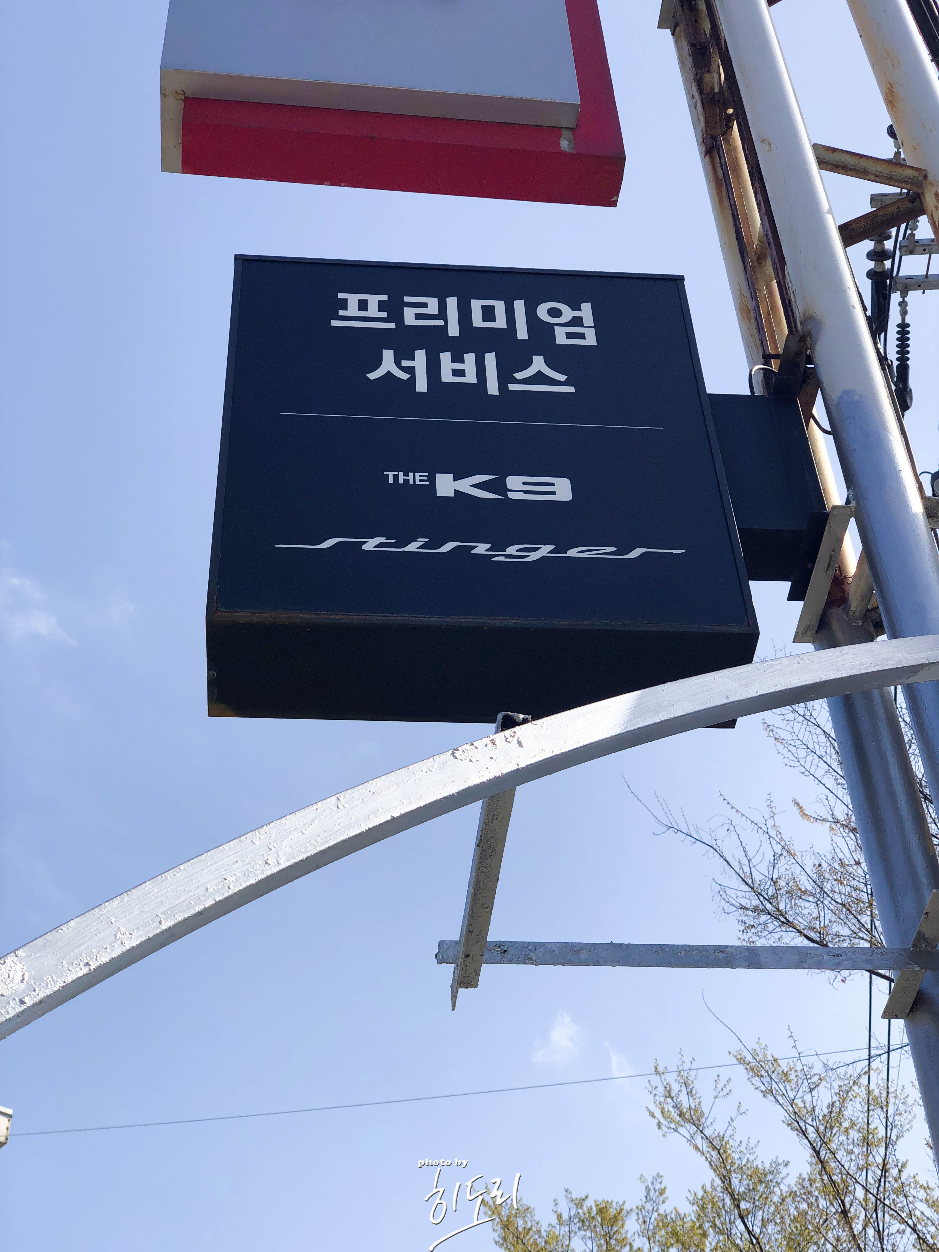 앞에 가니 프리미엄서비스라고 해서 k9,스팅어 간판이 떡 하니 있네요.