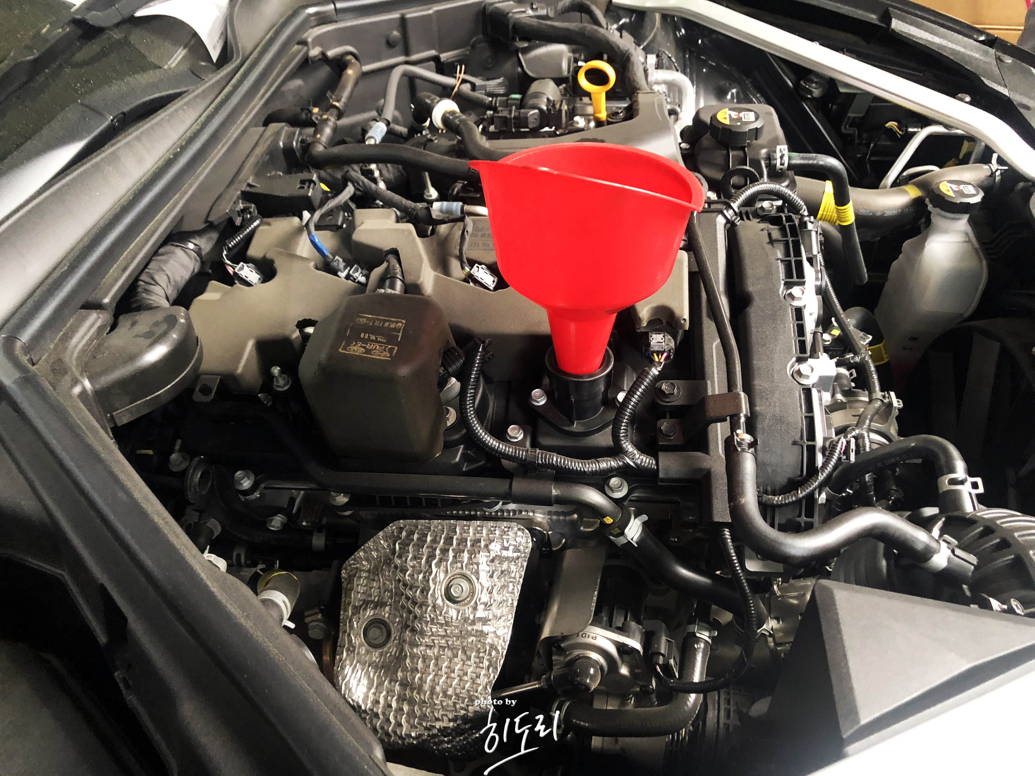 일반 오일을 넣으면 되는줄 알았는데 2.5 스마트스트림 엔진은 전용 엔진오일이 들어간다고 하네요.