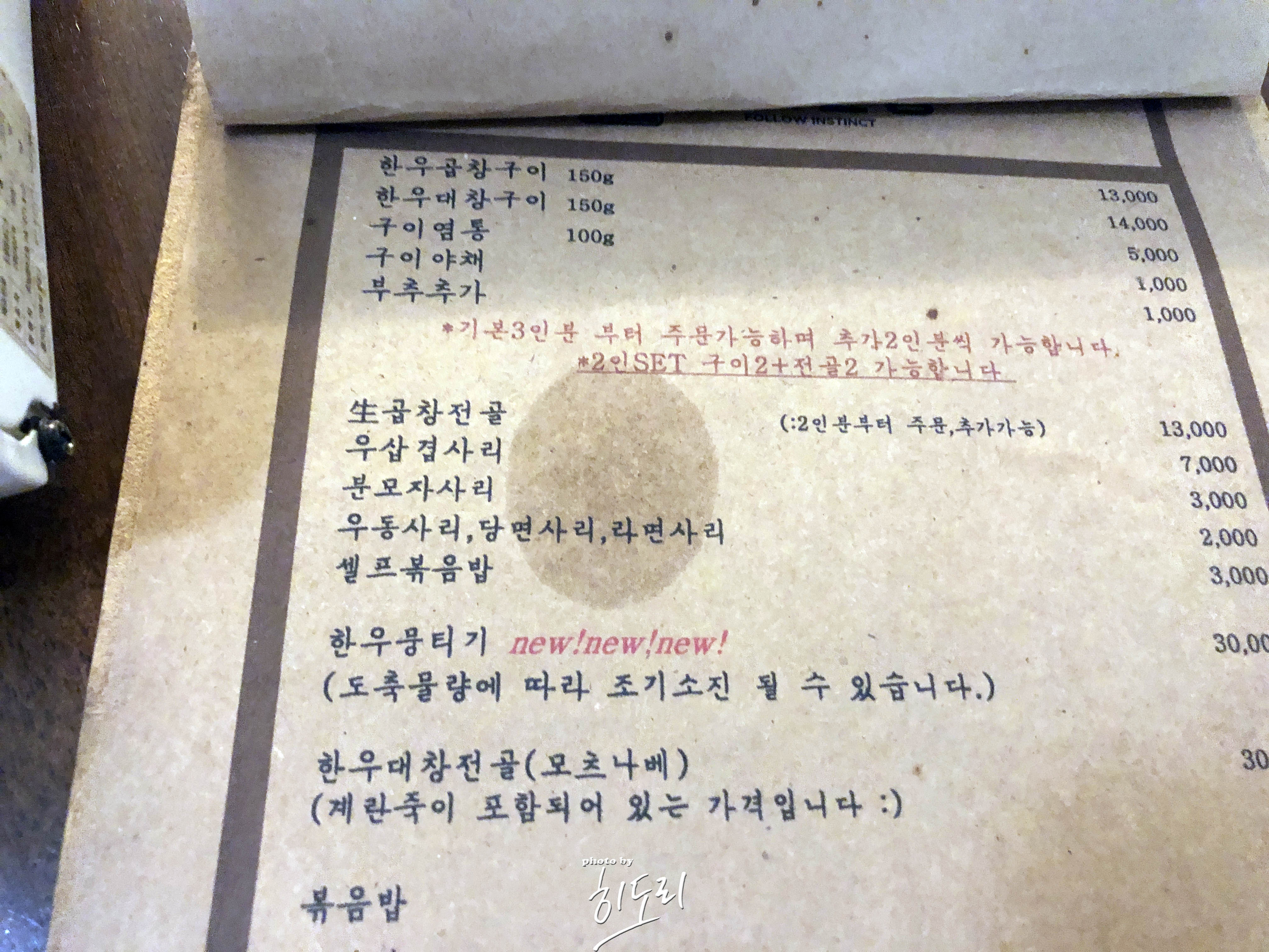 곱창뿐만 아니라 신메뉴들도 많이 있고 무엇보다도 한우뭉티기... 육회랑 비슷한것 같으면서 틀린... 한번쯤 먹고 싶었는데... 못먹었어요. ㅜㅜ 다음번에는 쫌 일찍가서 꼭 먹어봐야겠어요.