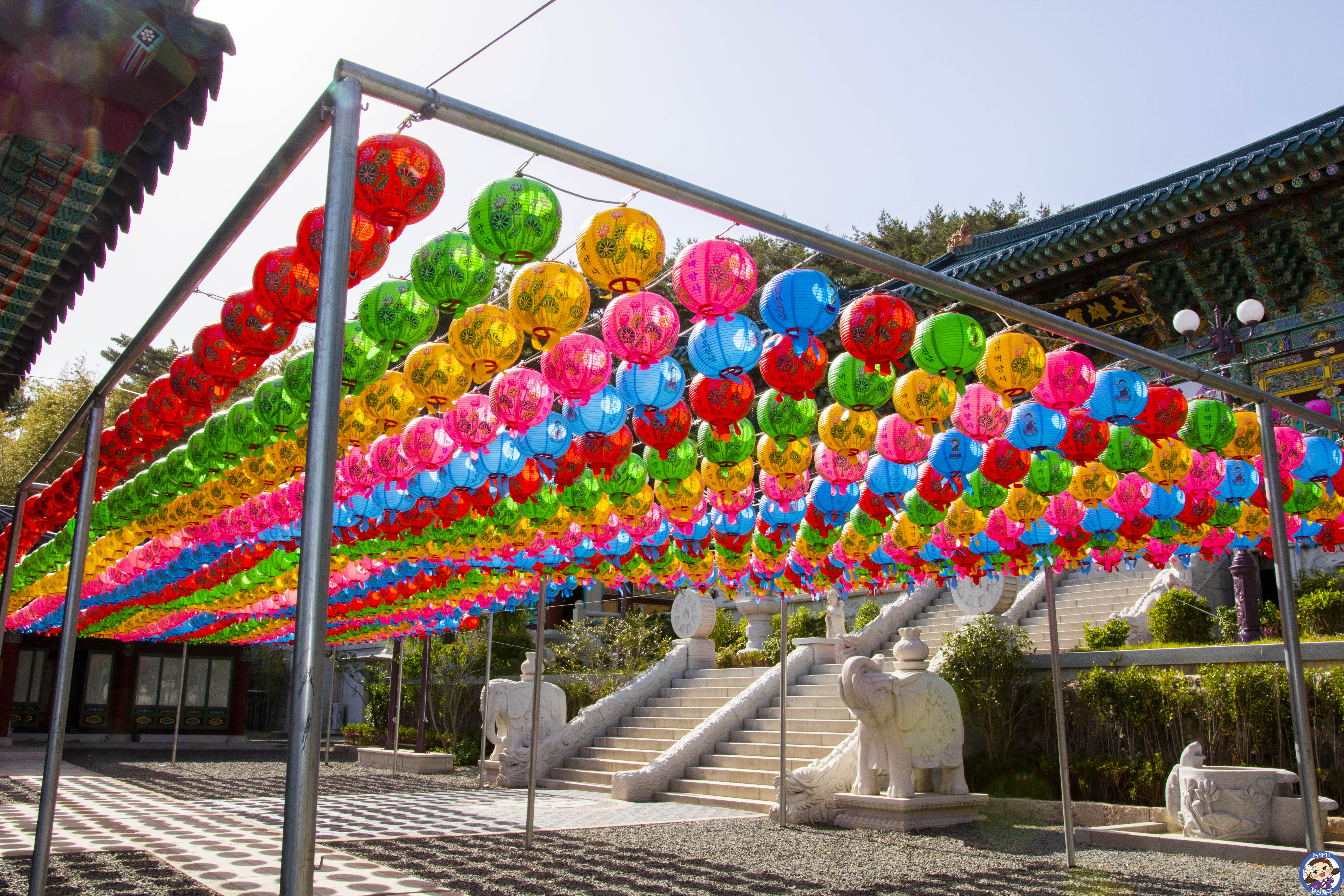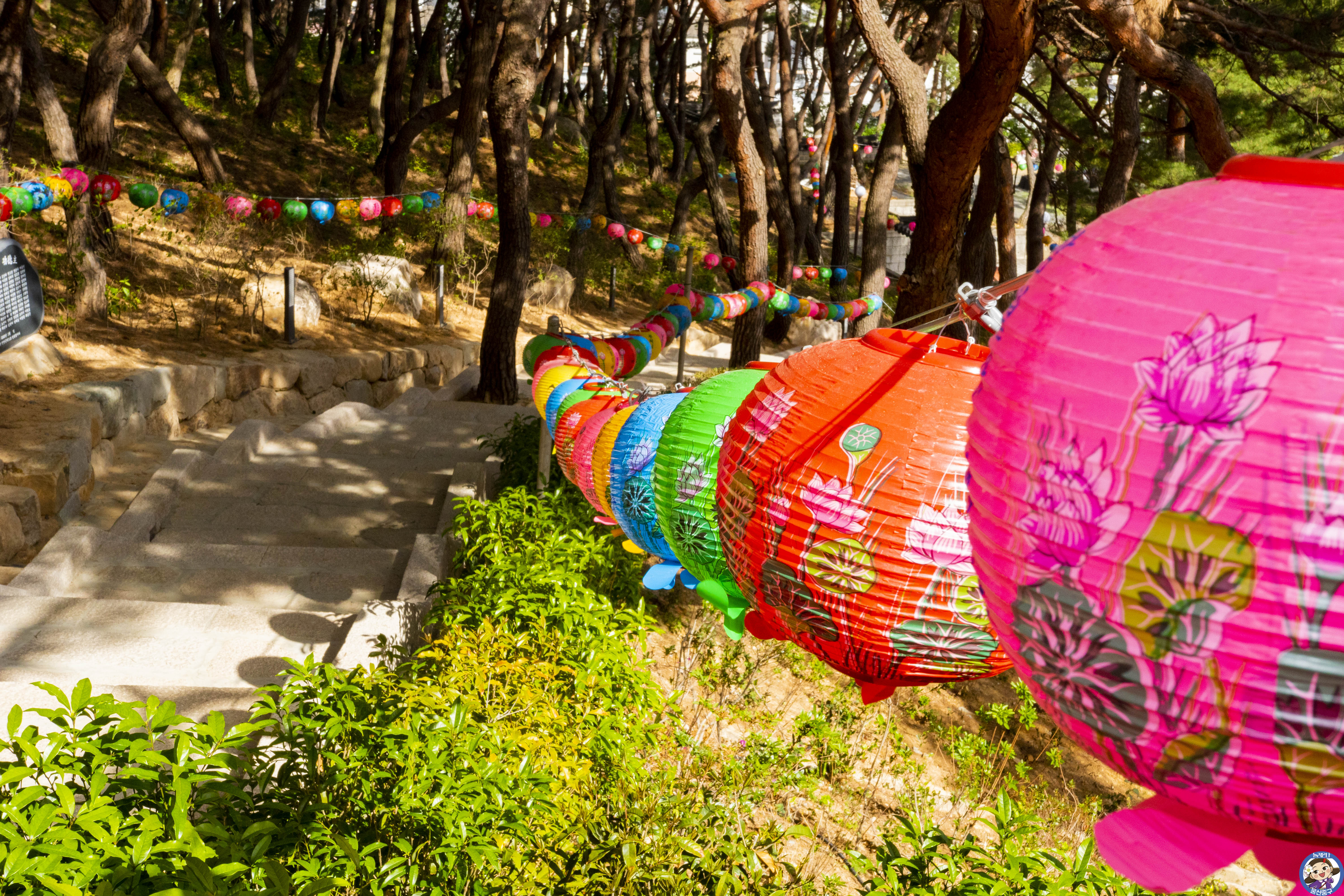 명부 작성을 하고 계단을 타고 올라가보니 색색별 연등이 하늘을 수놓아져 있습니다.