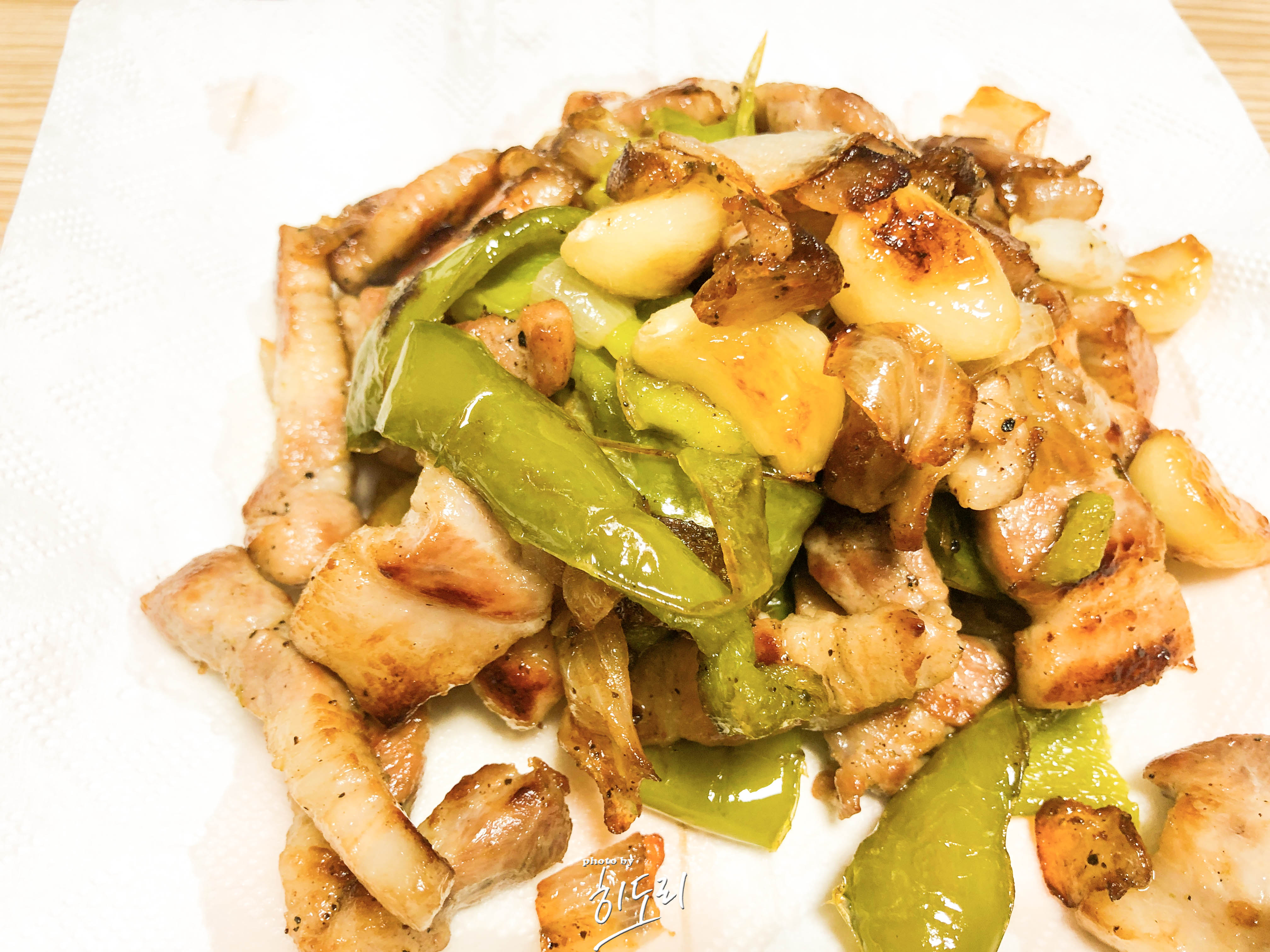 짜잔 노릇노릇하게 굽힌 삽겹살입니다.