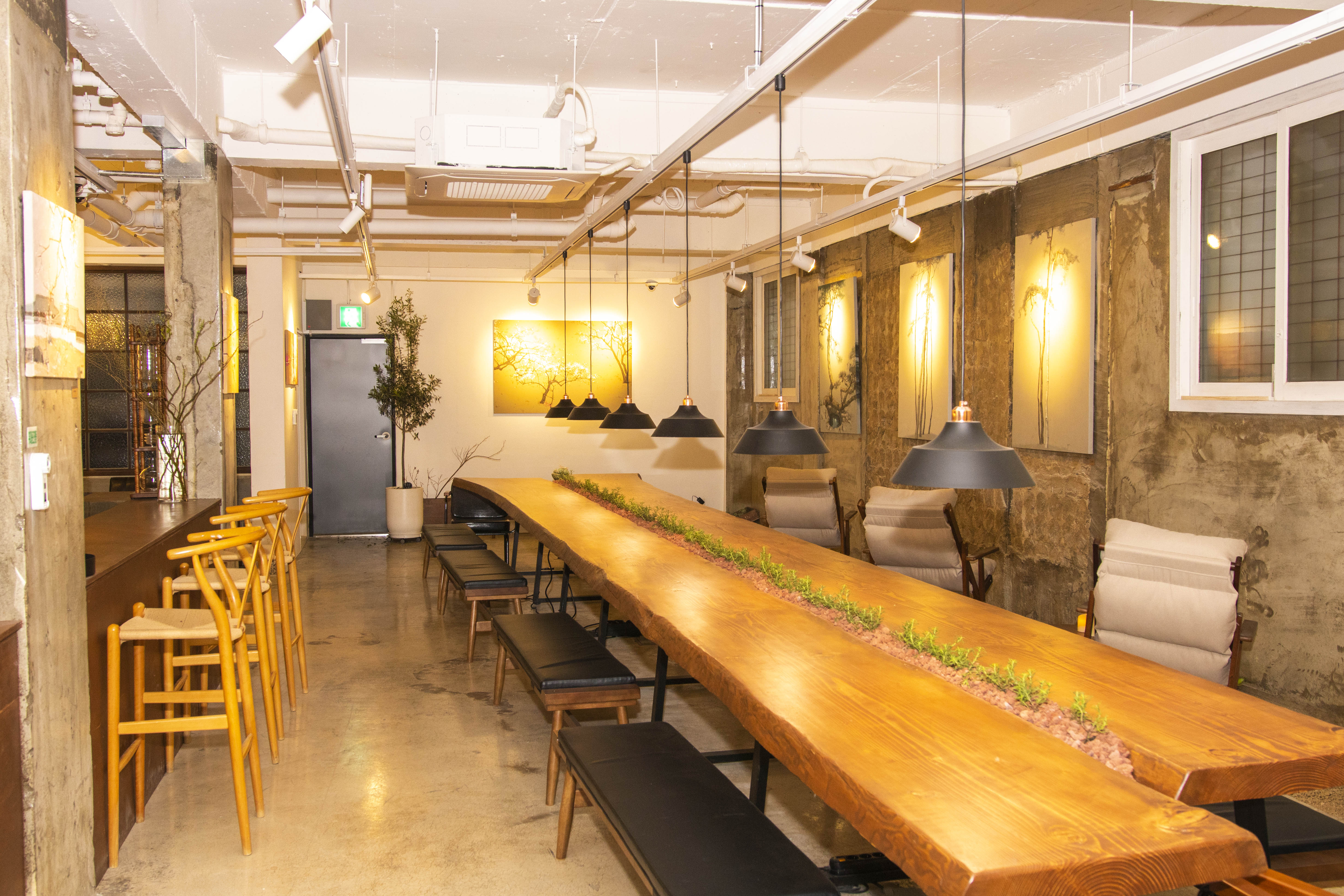 회의, 세미나도 가능하도록 공간을 조성해 놓았고 1인 사무공간과도 자연스러운 교류가 가능하도록 공간의 벽을 허물어 지하로 내려오는 동안 동선이 아주 자연스러운 공간이라고 생각이 들었습니다.