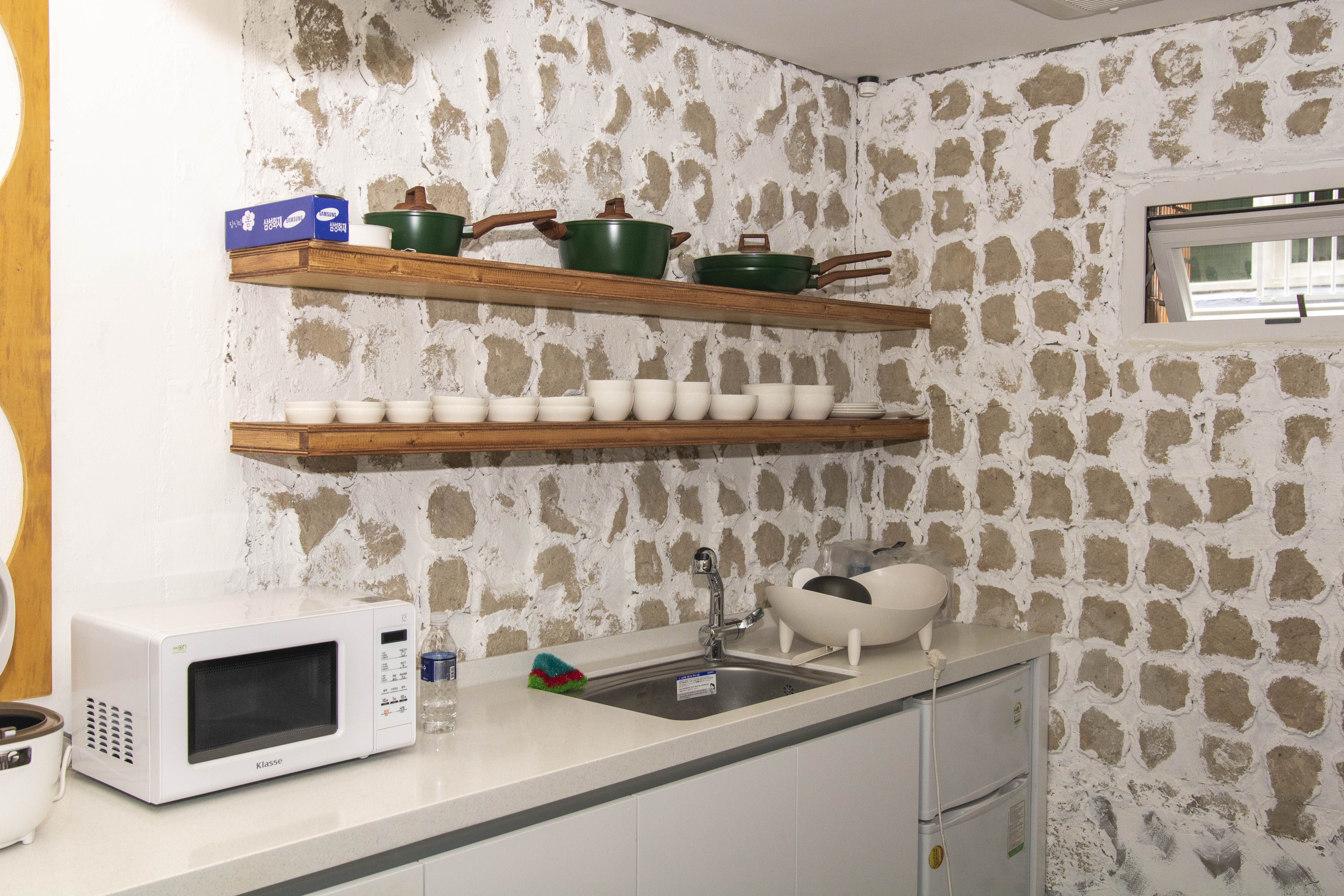 각층별로 공유 주방이 있는데 쿡탑,싱크,소형가전들이 있어서 직접 요리를 해먹을수도 있으며 전 구역 CCTV도 설치되어 있어 안전하게 이용을 할수있는 코코스페이스 입니다.