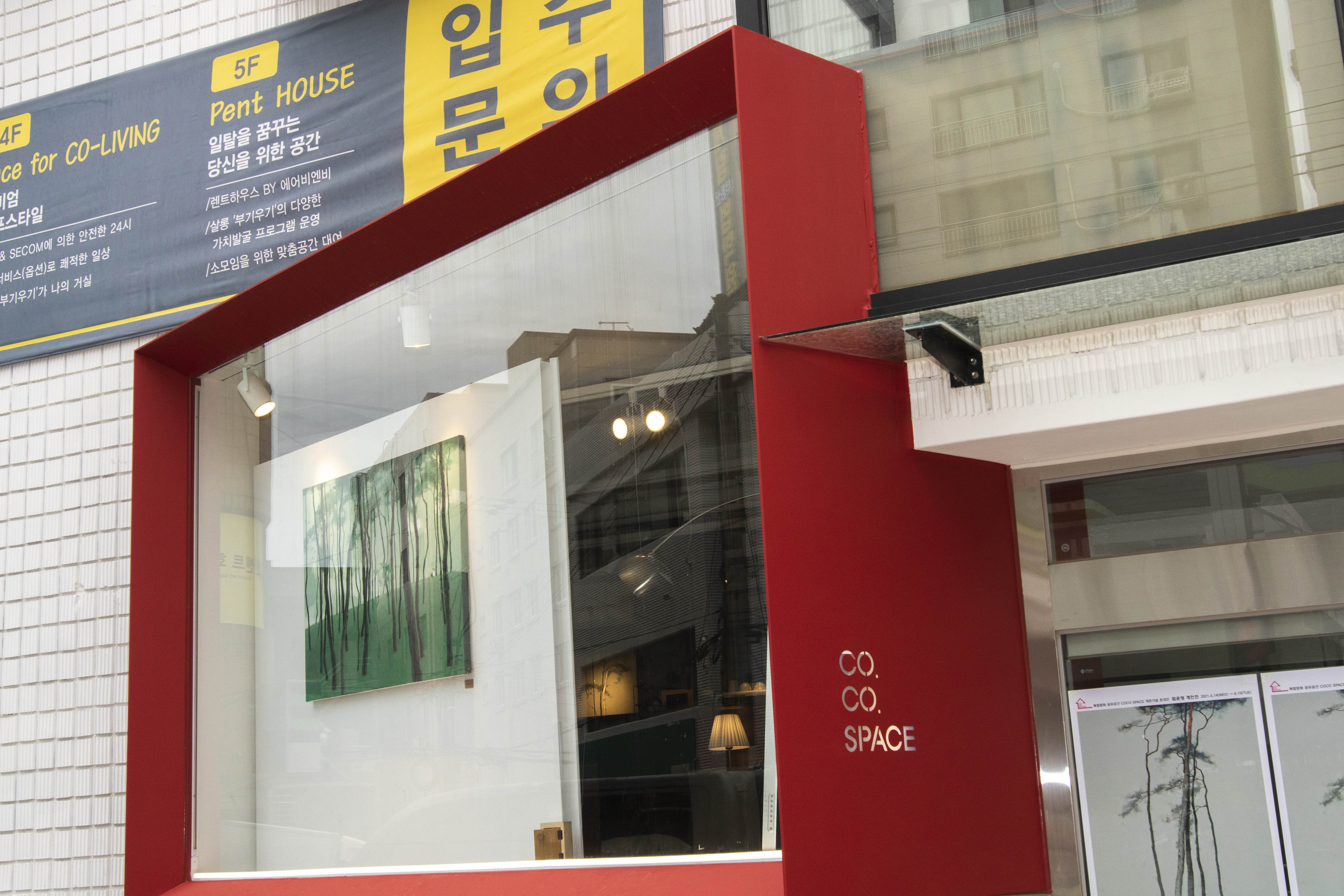 입구에 보이는 창가는 1층의 갤러리 카페로 전시회등으로 사용할수가 있는데 야외에서도 전시작품을 걸어둘수 있게 오픈형으로 제작이 되어 있습니다.