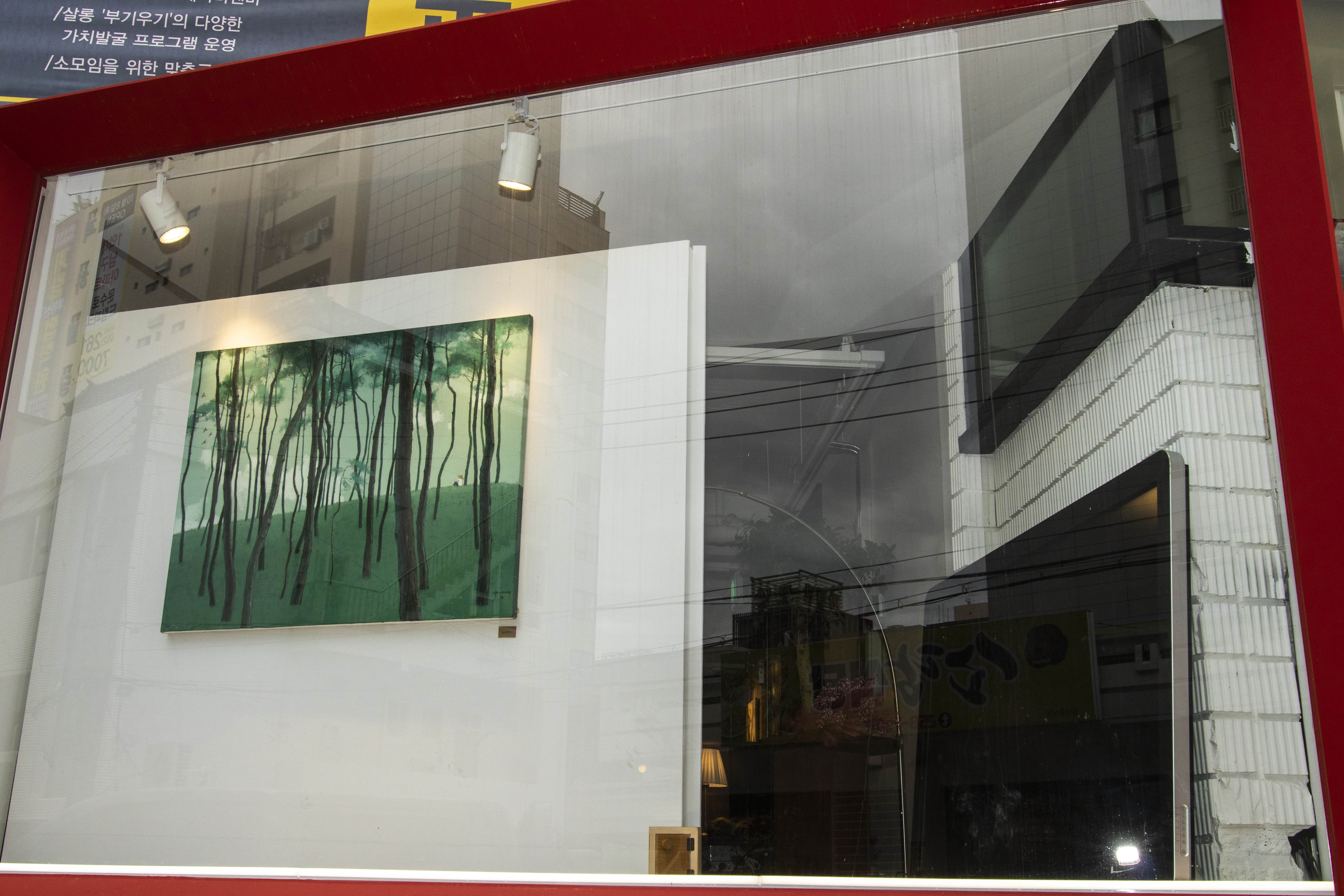 1층은 갤러리 카페로 운영중인데 현재 서양화가 엄윤영작가의 개인전시회가 열리고 있습니다.