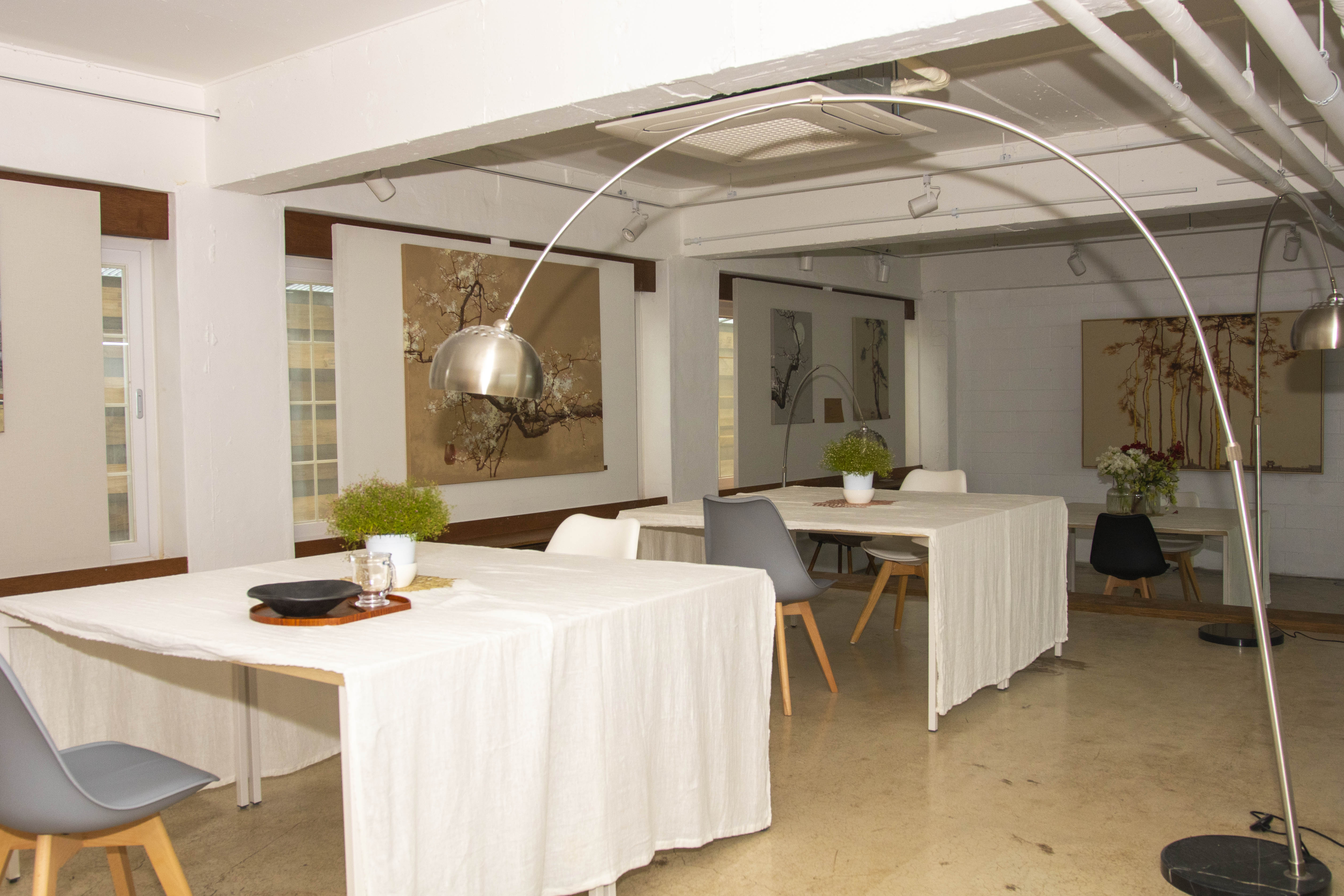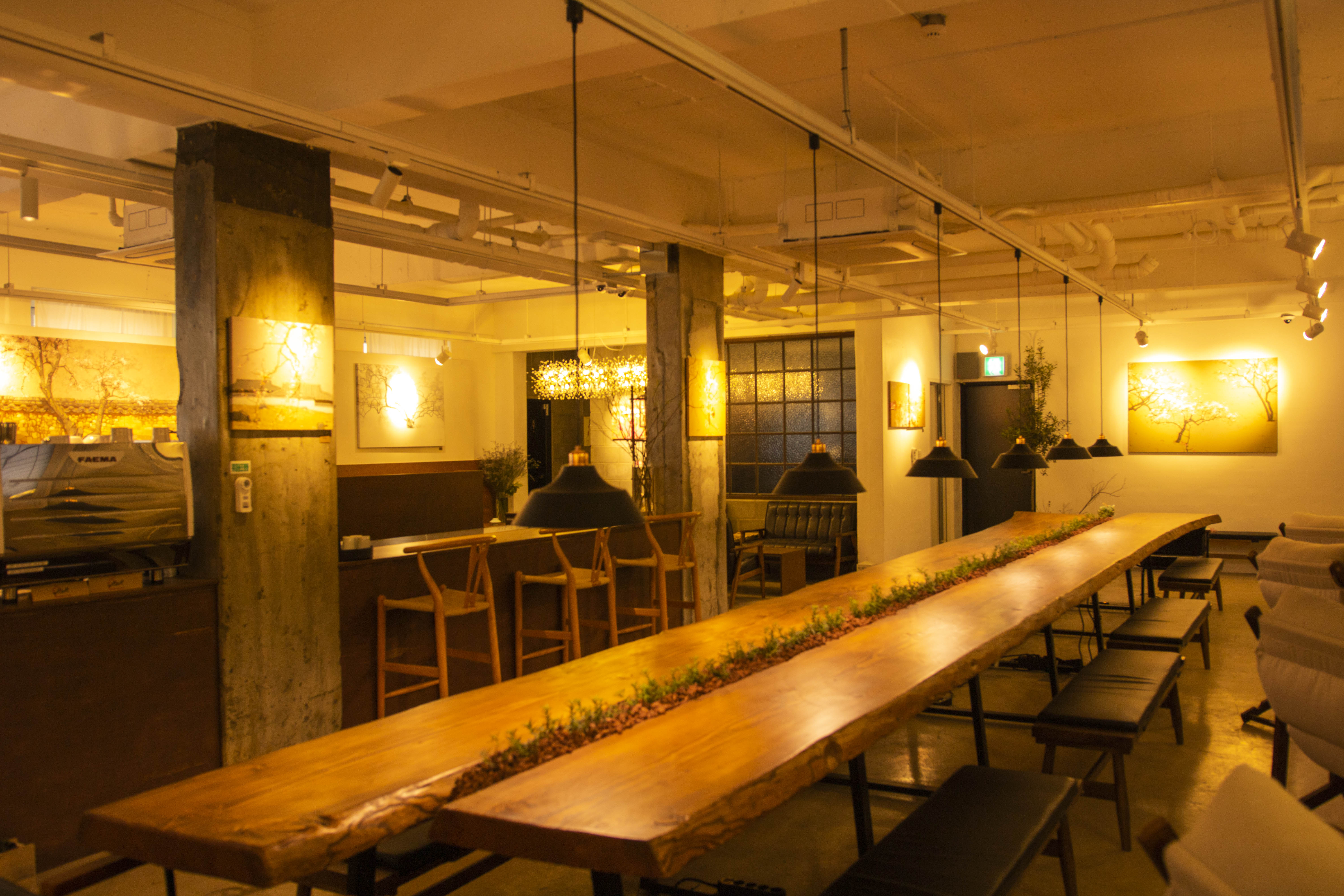 뿐만 아니라 1층의 갤러리카페 내 1인 기업을 위한 커뮤니티 라운지에서는 차를 마시고, 약속을 잡고, 리포트나 회의문서를 작성할 수 있습니다.