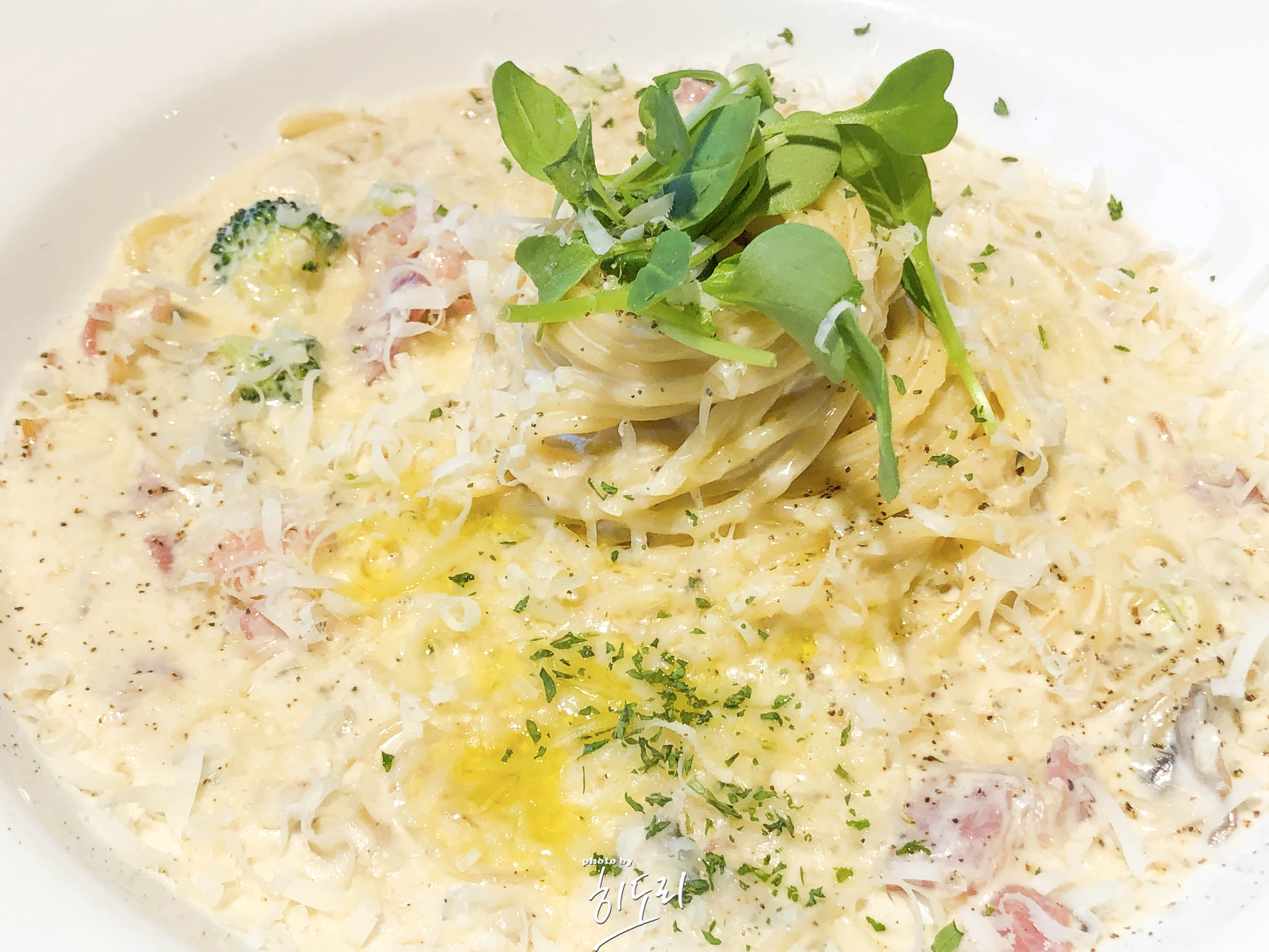 까르보나라를 먹다보면 느끼하고 물리는편인데~ 공간나인은 딱 좋아요.