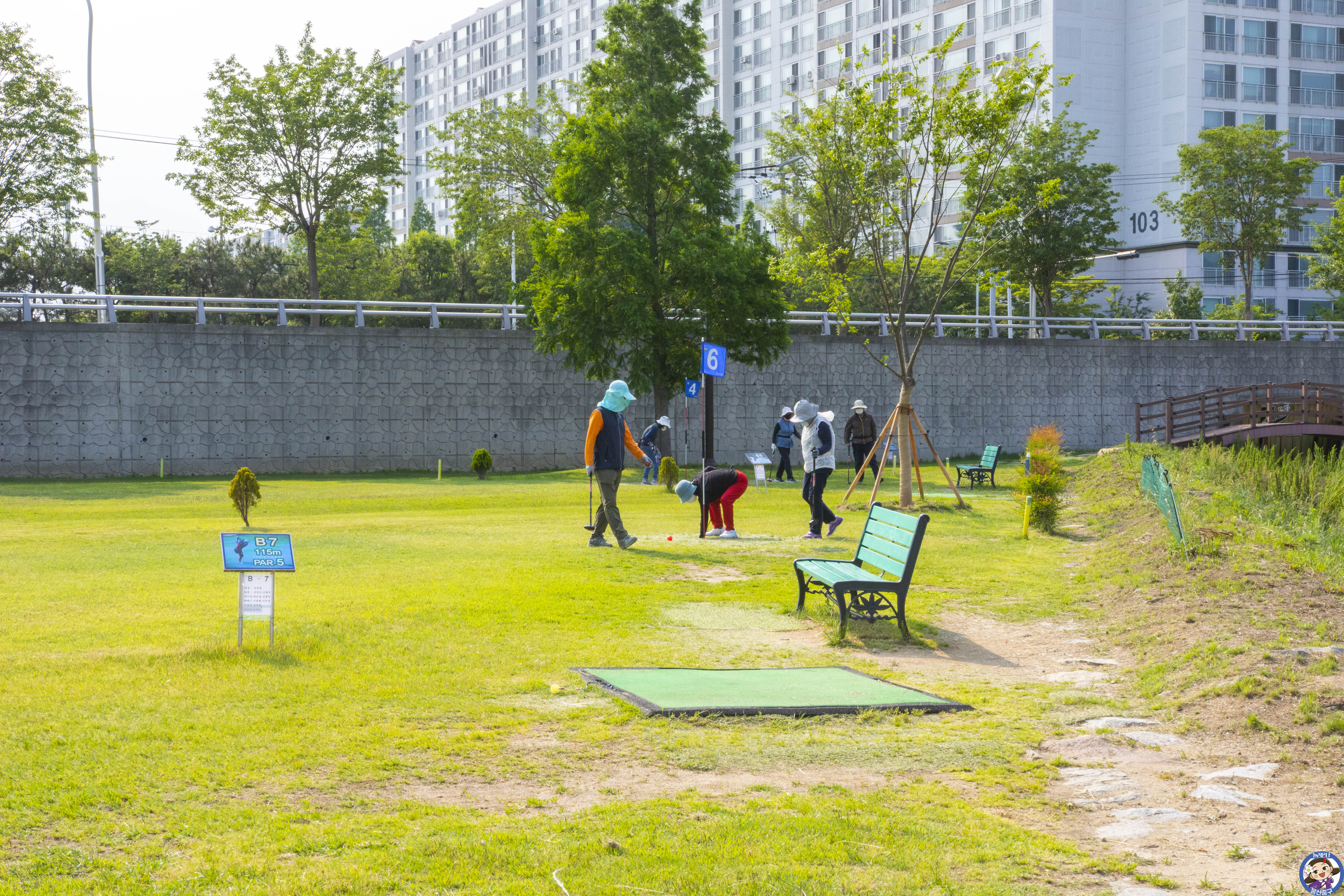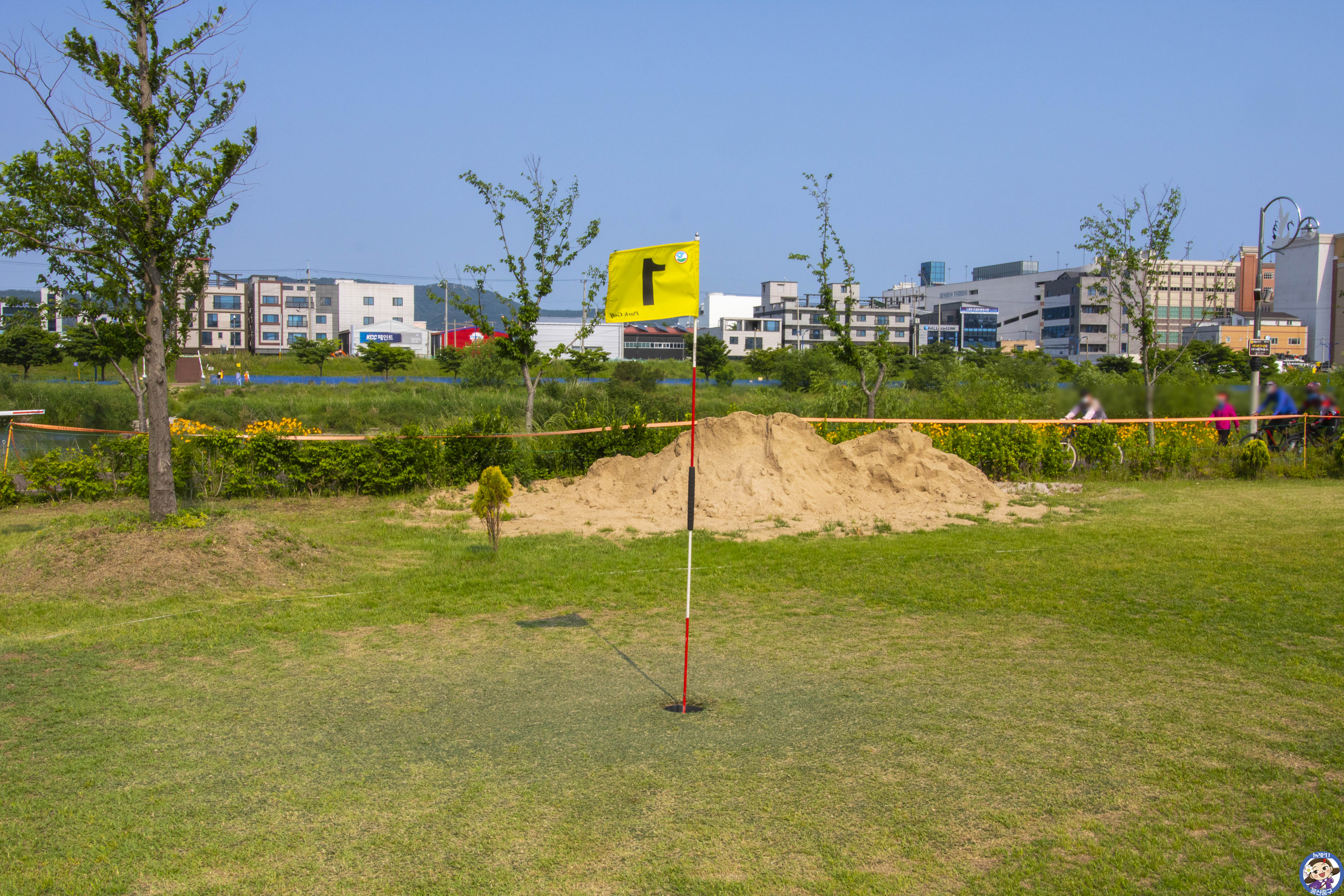생각보다 꽤 넓은 공간에 여러홀로 조성이 되어 있는데 동천강을 바라보며 골프를 치는 재미도 솔솔할것 같습니다.