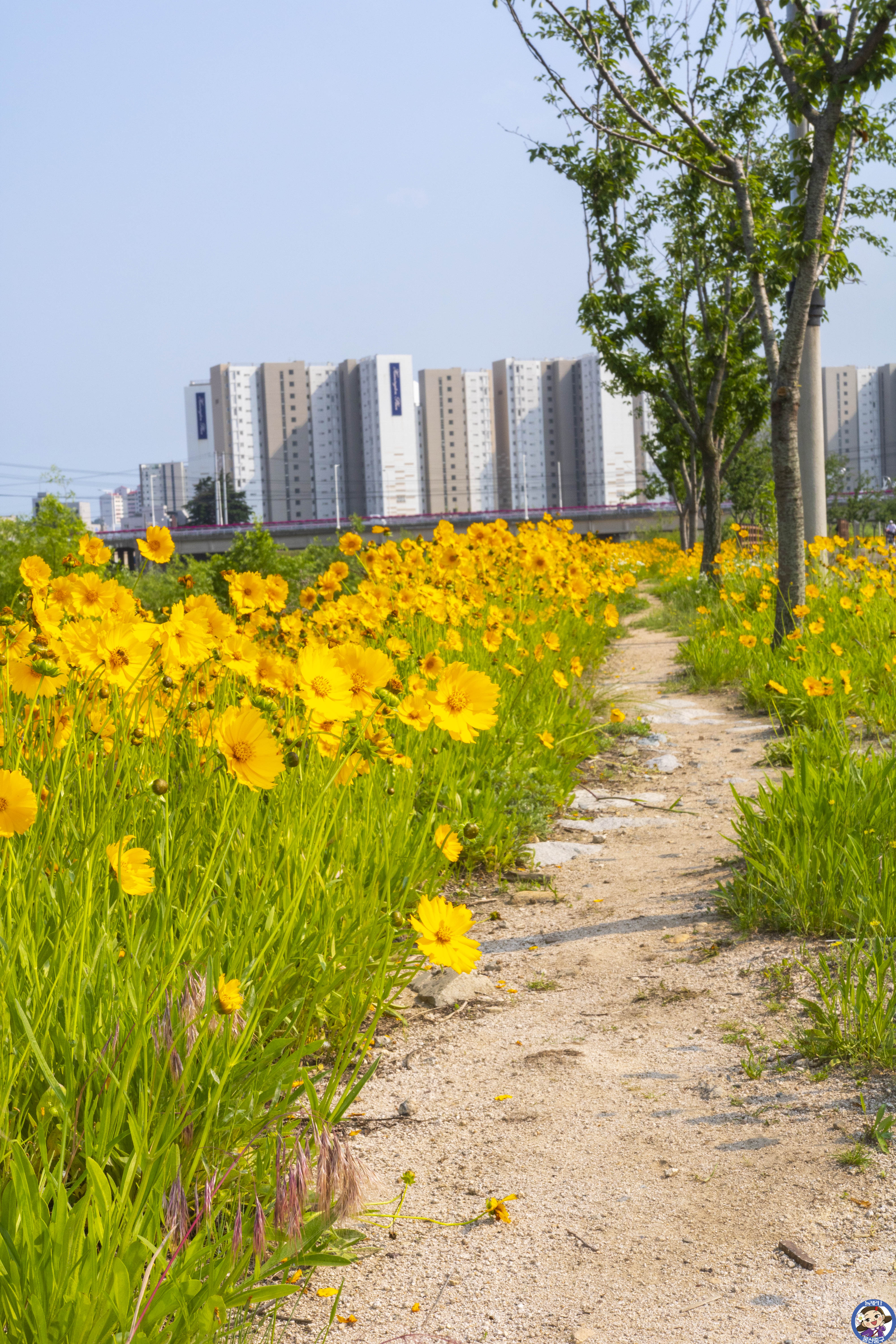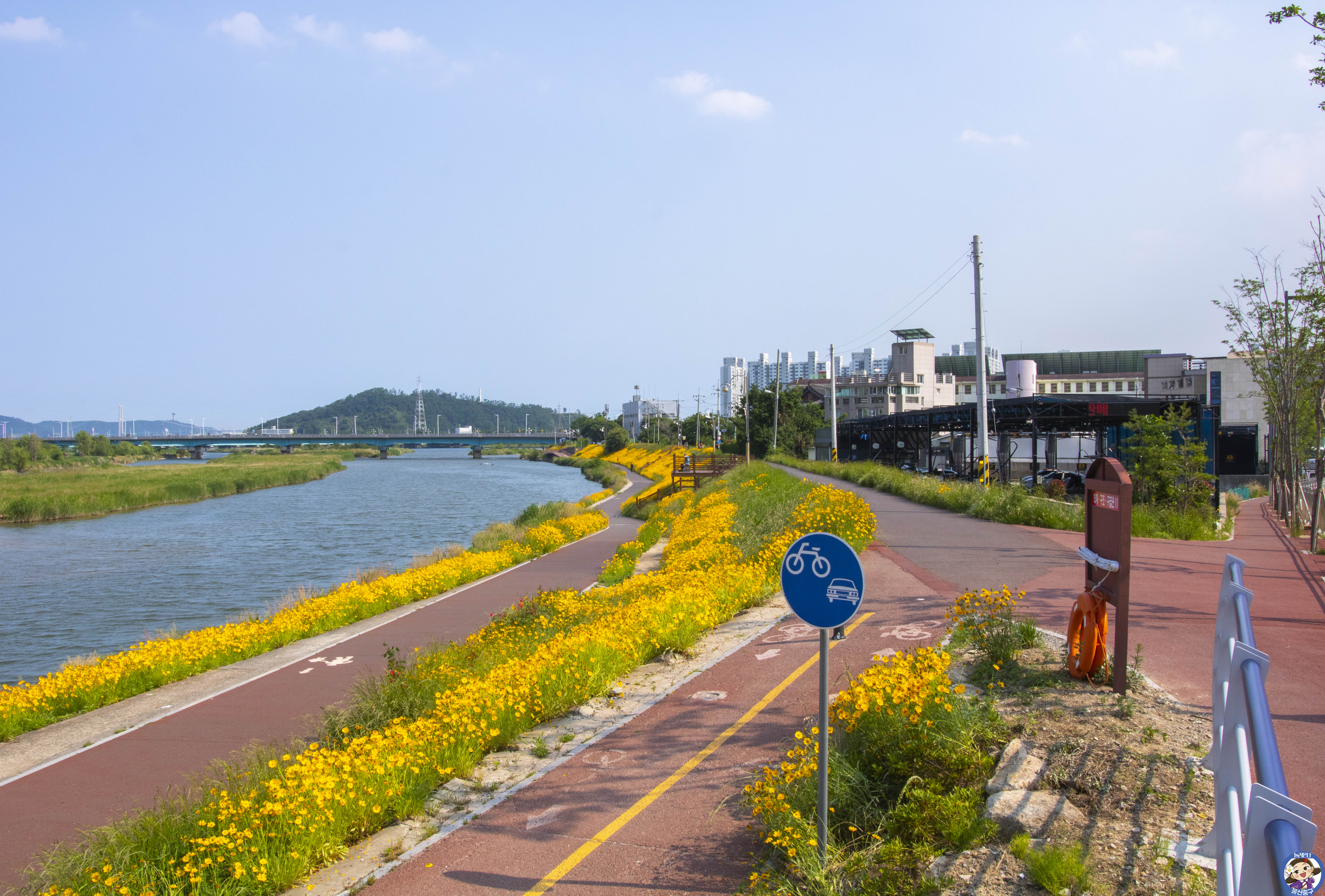 사진에 보시다 시피 동천 산책로에는 노랗게 피어있는 금계국이 찾아오시는 시민분들을 환하게 반겨 줍니다.