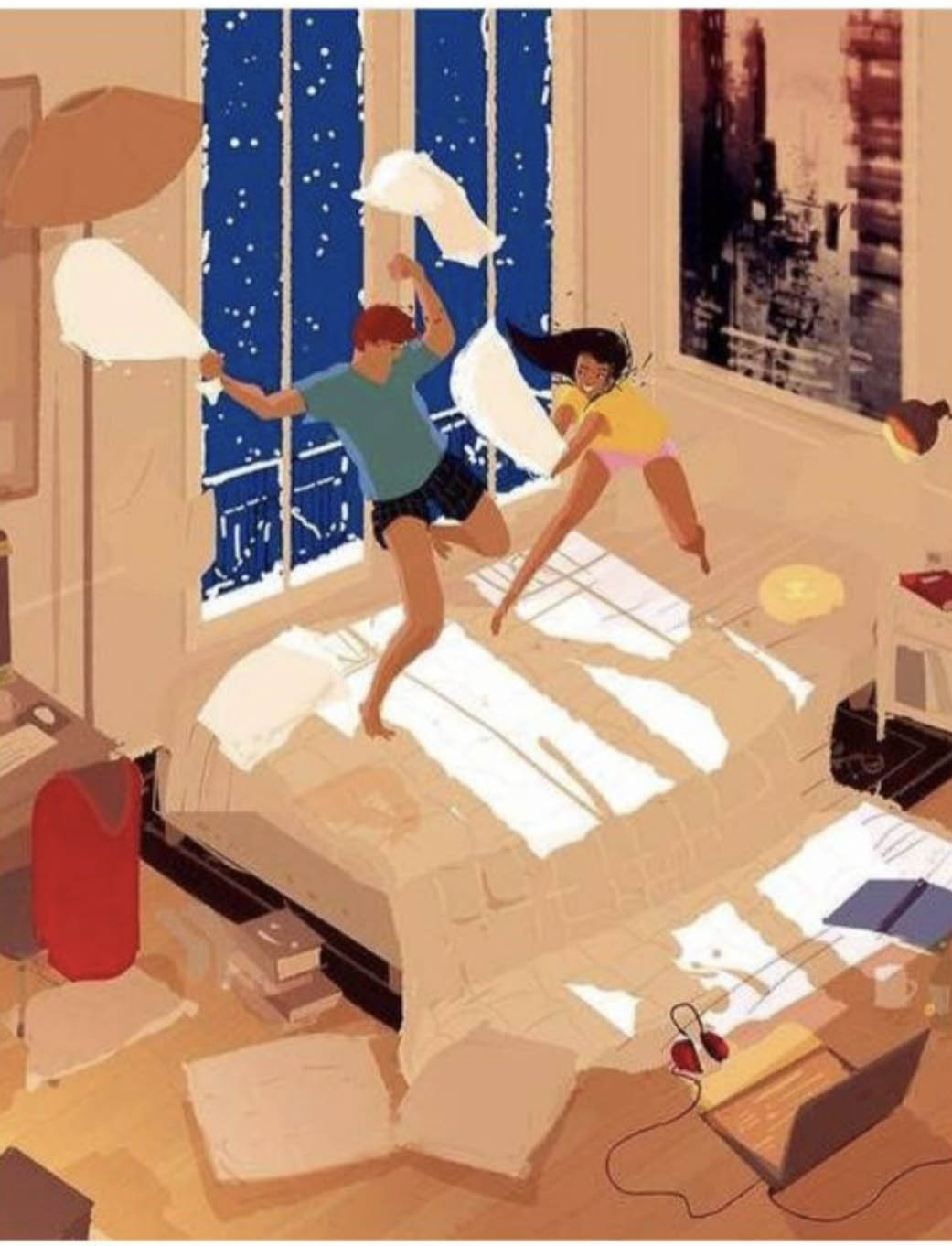 주말에 방콕하면서 노트북으로 영화를 보며 침대에 뒹굴뒹굴 누워있다 갑자기 베게싸움 ㅋㅋㅋ